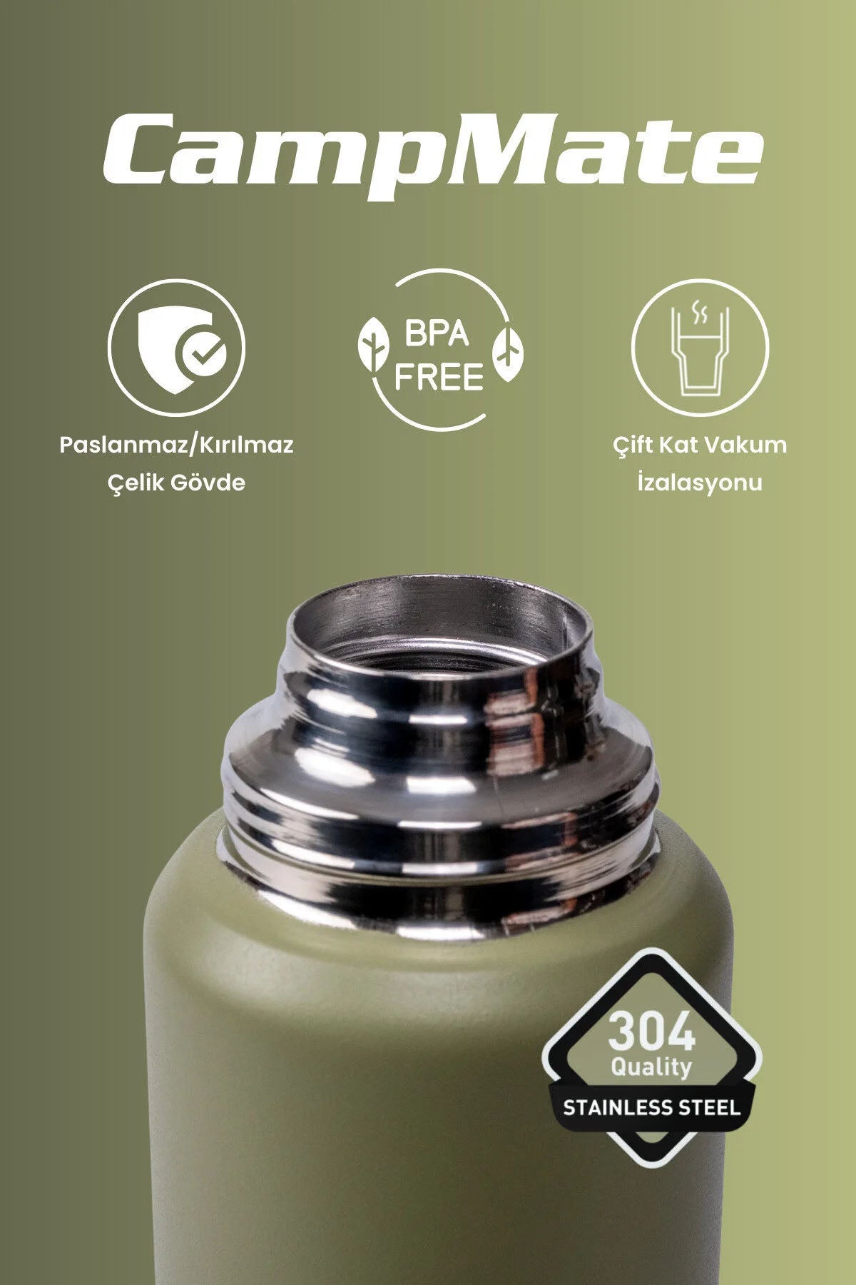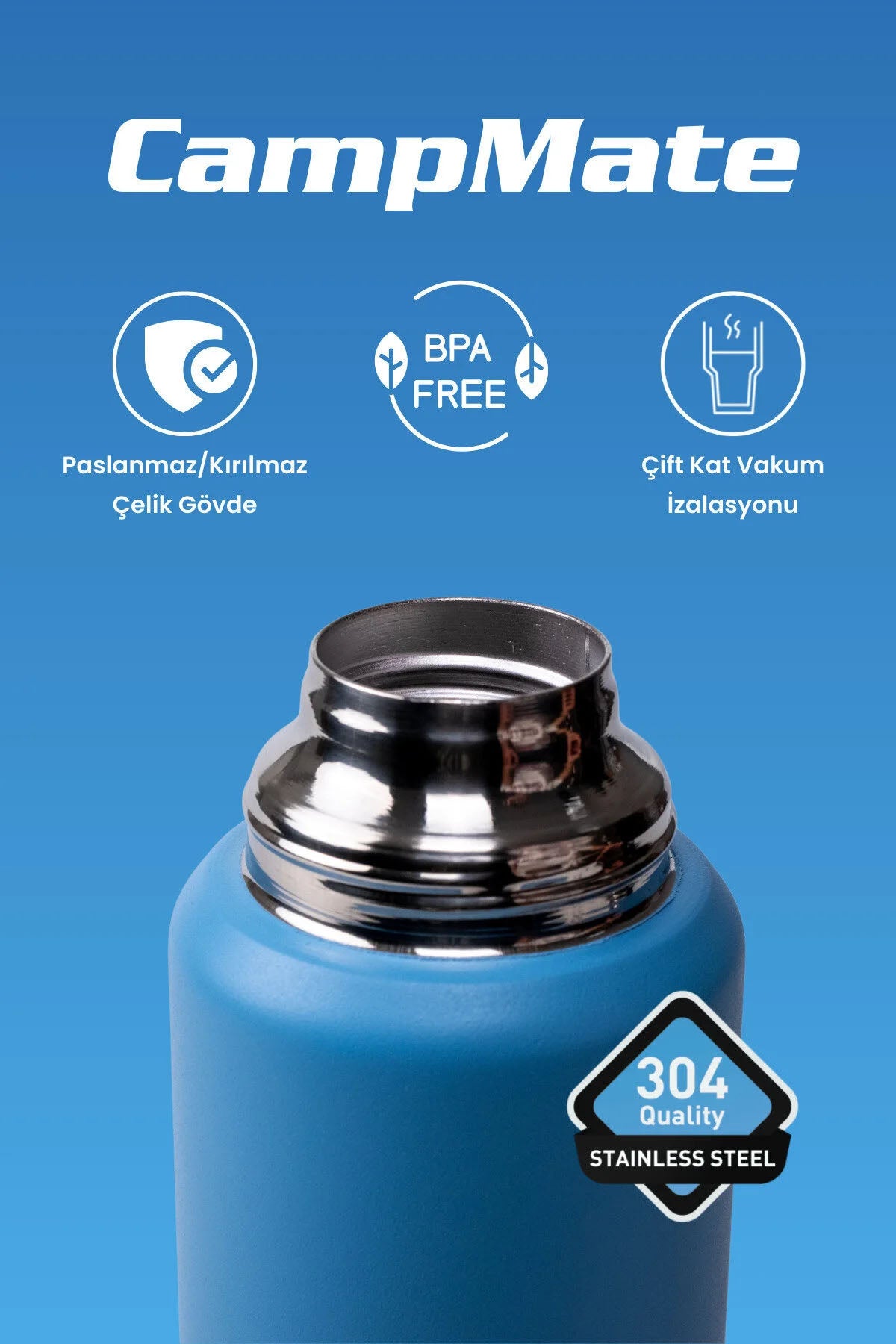 - Malzeme: Çift cidarlı paslanmaz çelik gövde — iç ve dış yüzeyde sağlamlık ve ısı koruma performansı sunar.