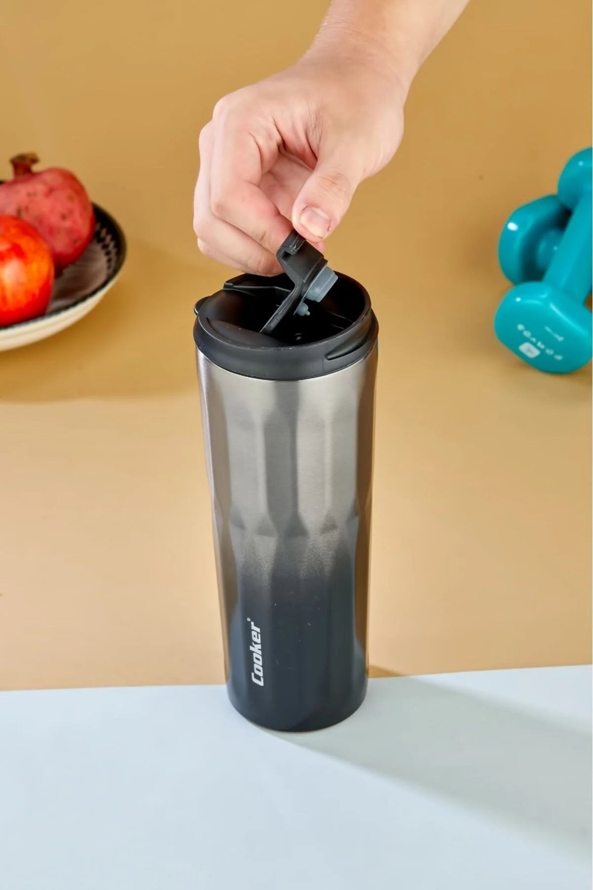 - Kapak & taban detayları: Sızdırmaz kapak sistemi ve kaydırmaz TPR (termoplastik reçine) taban sayesinde masa veya araç içi kullanımda güvenli duruş sağlar.