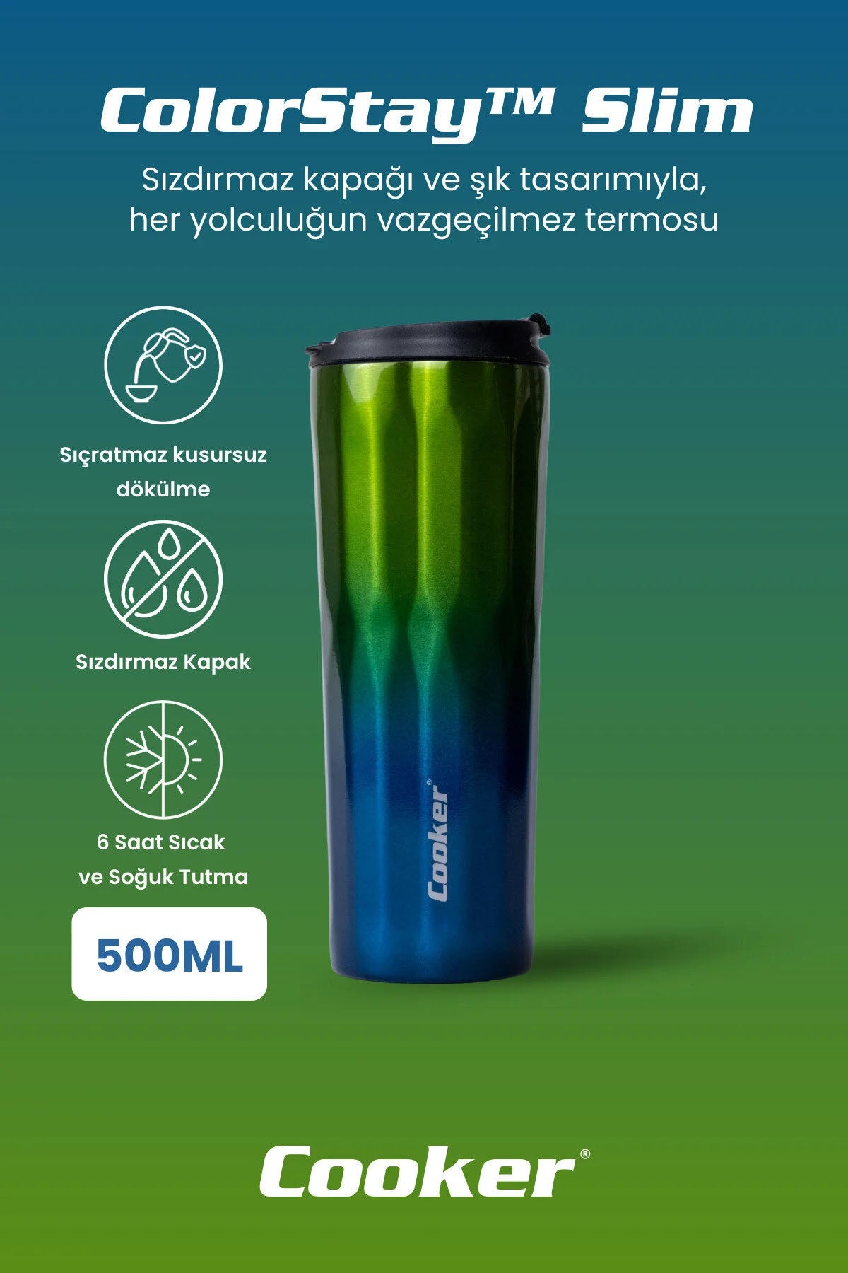 - Hacim: 500 ml — içeceğinizi gün boyu yanında taşımak için yeterli kapasite.