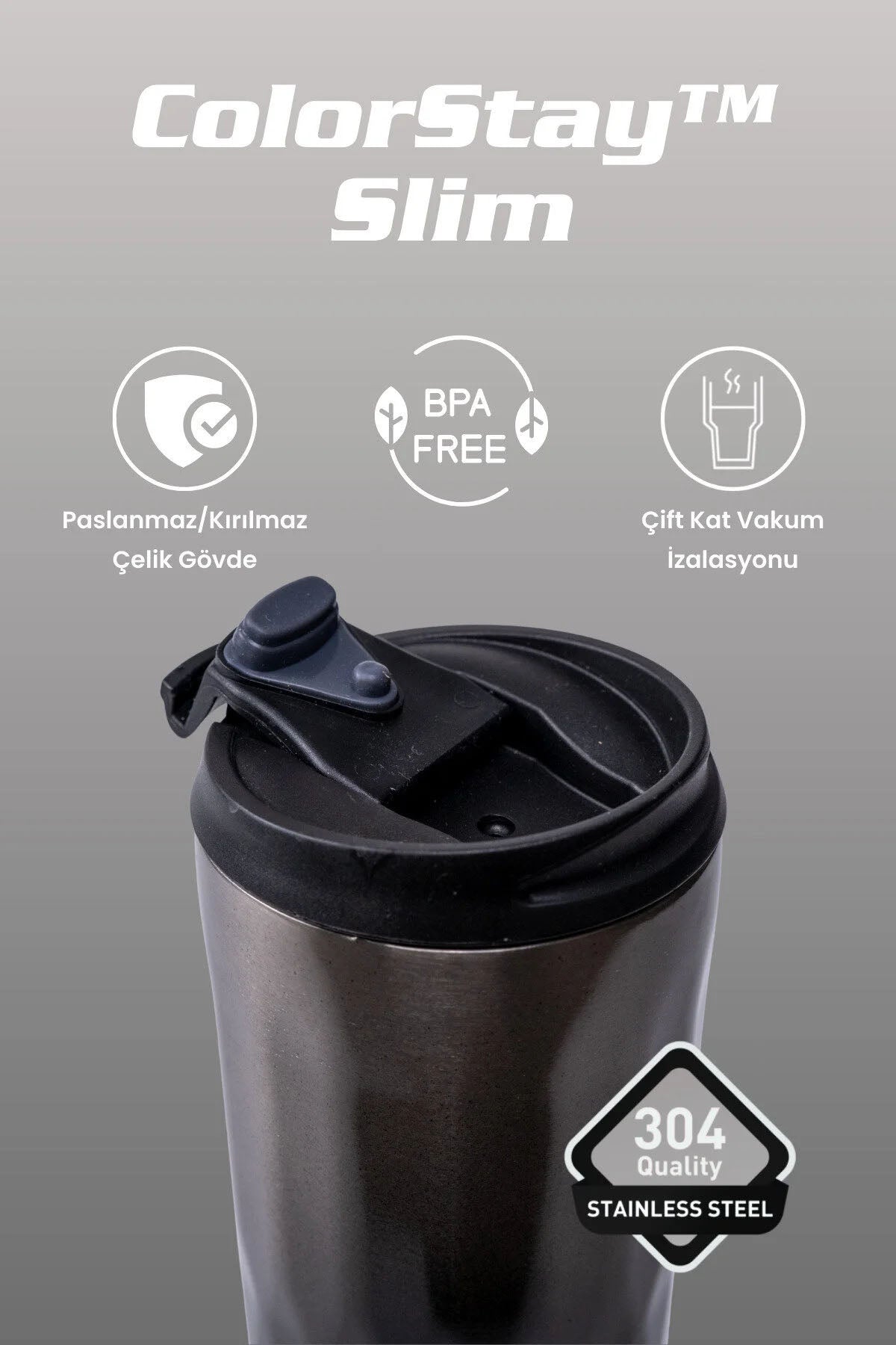 Günlük kullanımda stilinizi ve konforunuzu bir arada sunan bu şık mug-termos, dış mekânda, ofiste ya da aracınızda içeceğinizi güvenle taşımanız için ideal bir tercih.