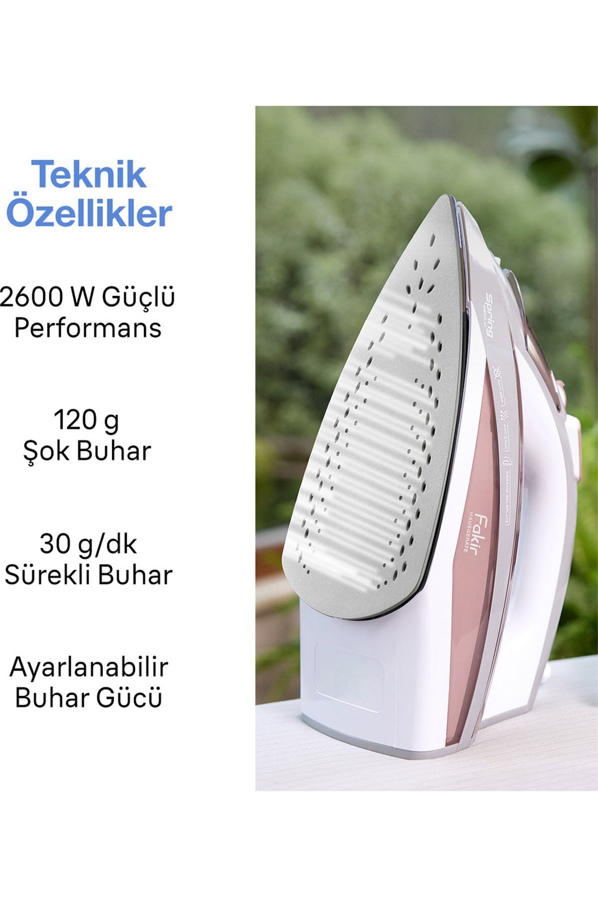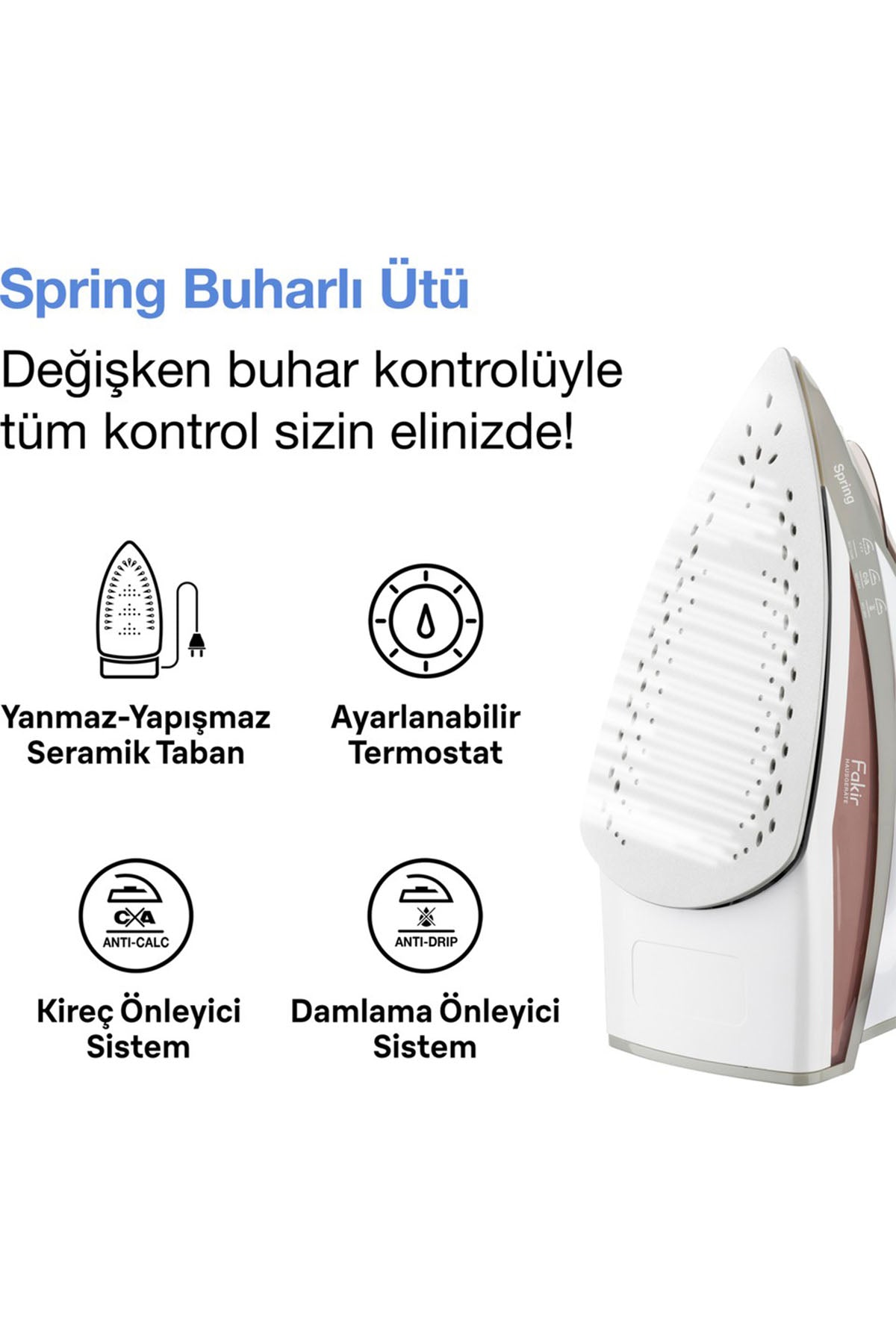 Fakir Spring 2600 W Buharlı Ütü (Dusty Rose) — Ev tekstil bakımında şıklığı ve verimliliği bir araya getiren premium bir ütü çözümüdür. Tozlu gül (Dusty Rose) rengiyle modern dekorlara uyum sağlar ve güçlü teknik özellikleriyle günlük ütü işlerinizi hızlandırır.