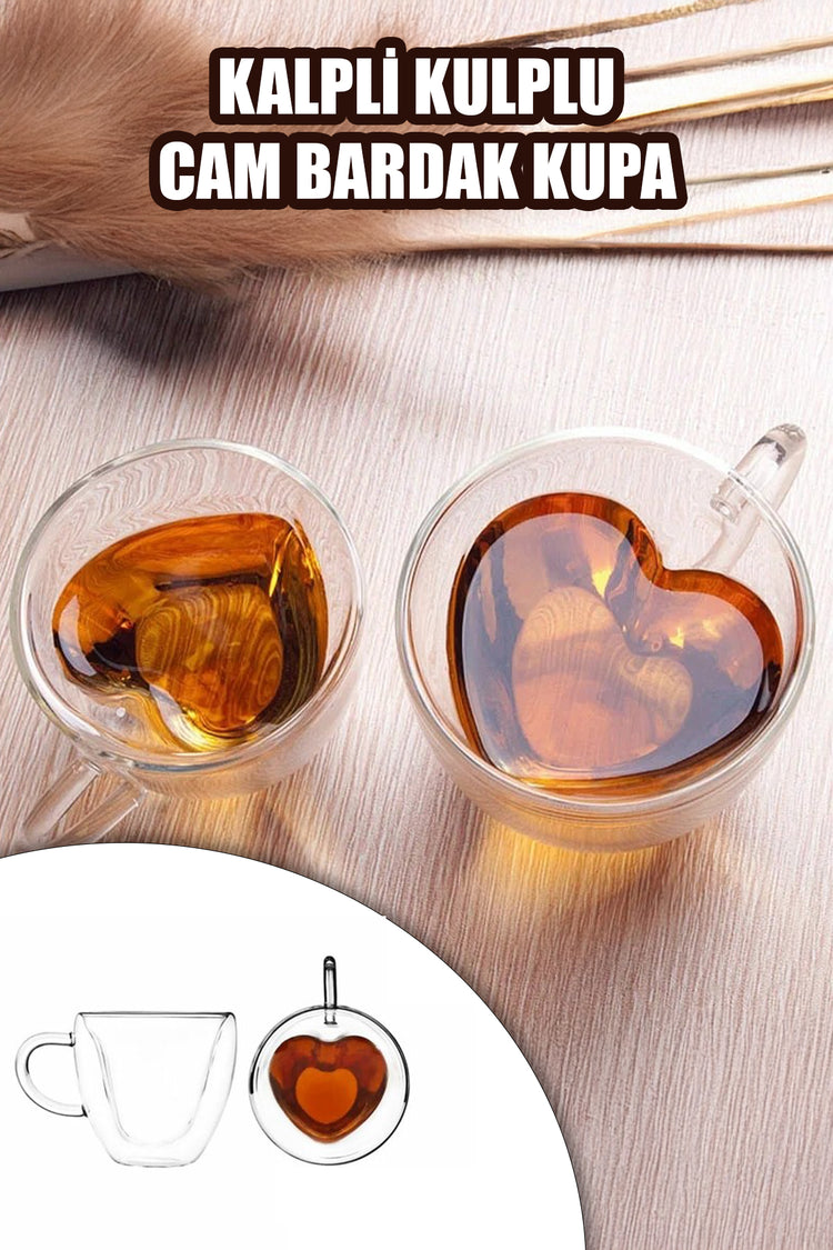 ❤️ Kalp desenli özgün tasarım: Sade ve şık cam formuna kalp deseni detayı kazandırılarak, hem romantik hem modern bir görünüm elde edilmiştir — çay/kahve keyfinizi evde ya da ofiste daha özel kılar.