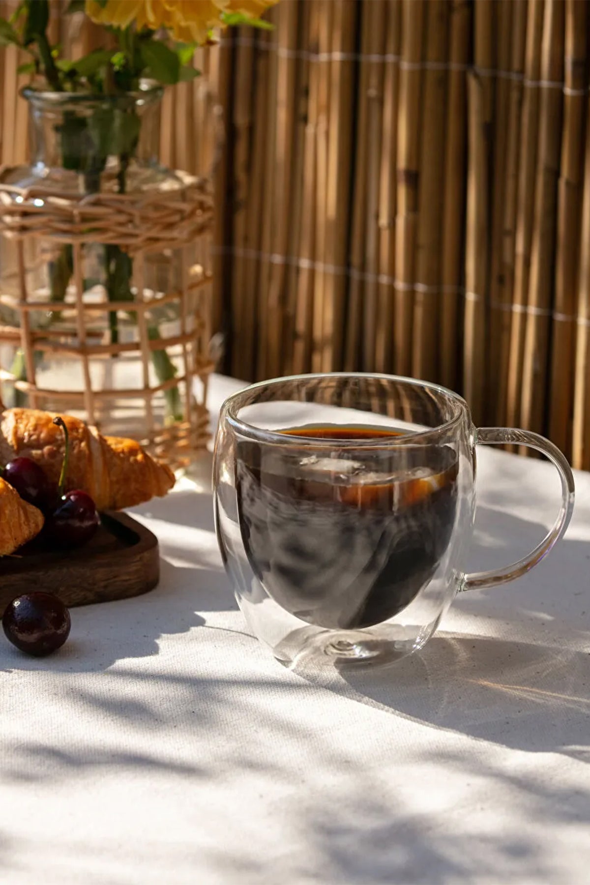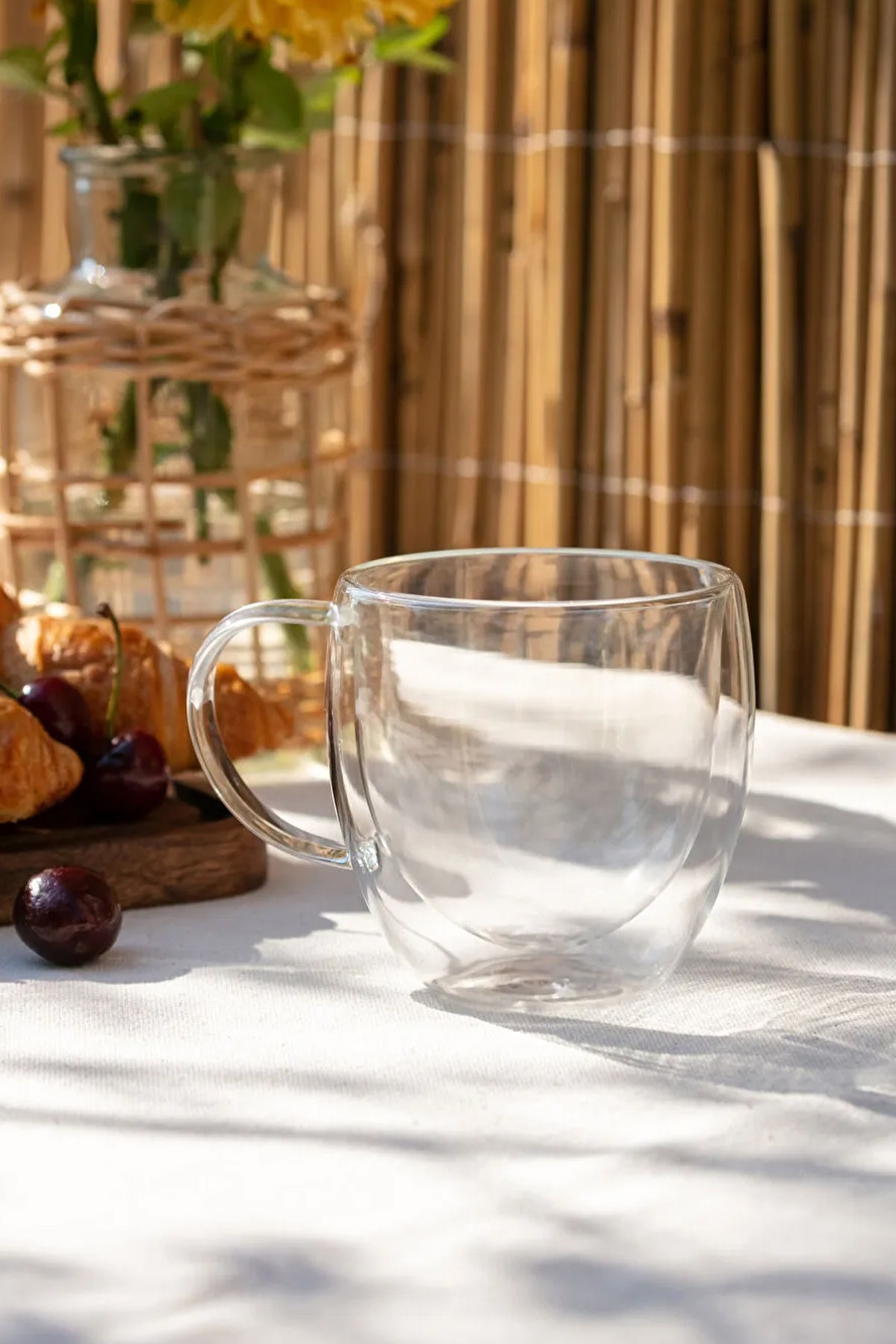 ÇİFT CİDARLI ISIYA DAYANIKLI KULPLU BOROSİLİKAT CAM BARDAK