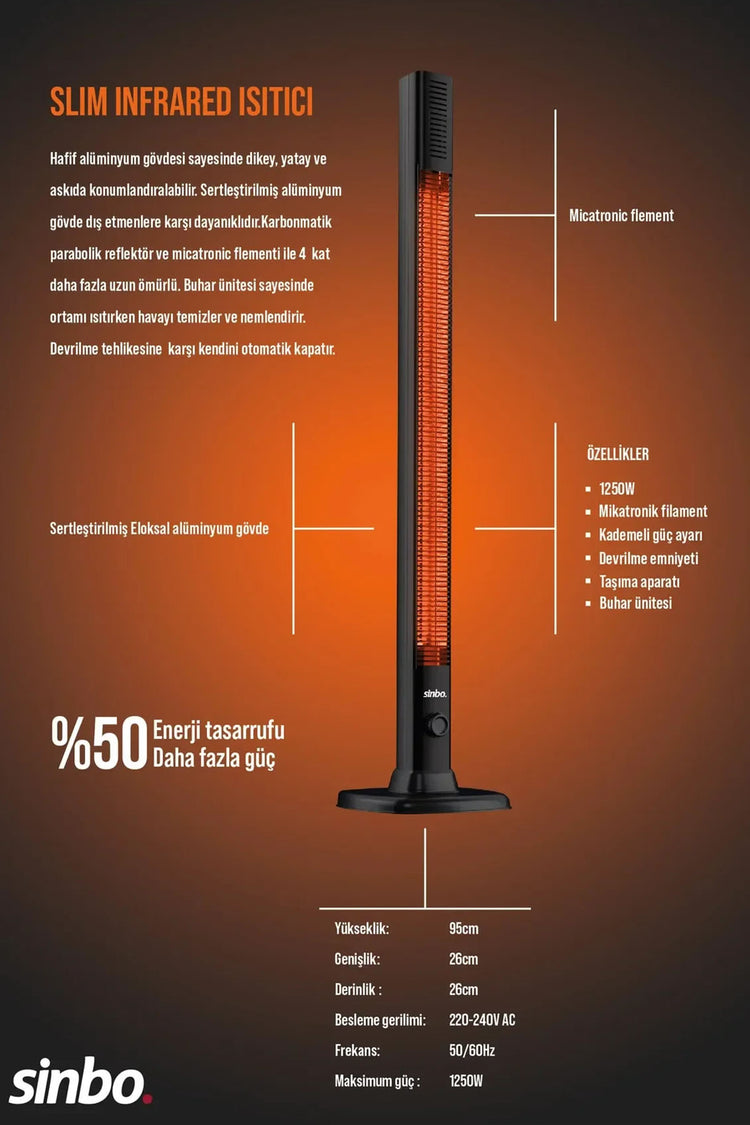 SİNBO SFH-6918 3IN1 KULLANIM YER DİKEY & DUVAR YATAY & D.DİKEY NFRARED ISITICI SOBA