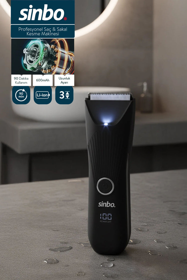 SİNBO SHC-1908 USB ŞARJLI & LCD GÖSTERGELİ STANDLI SAÇ & SAKAL KESME TRAŞ MAKİNESİ