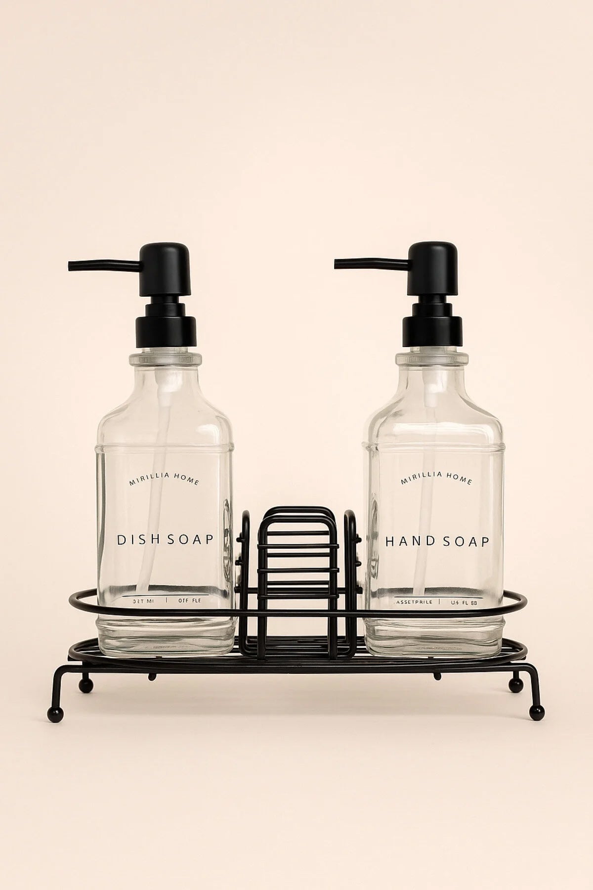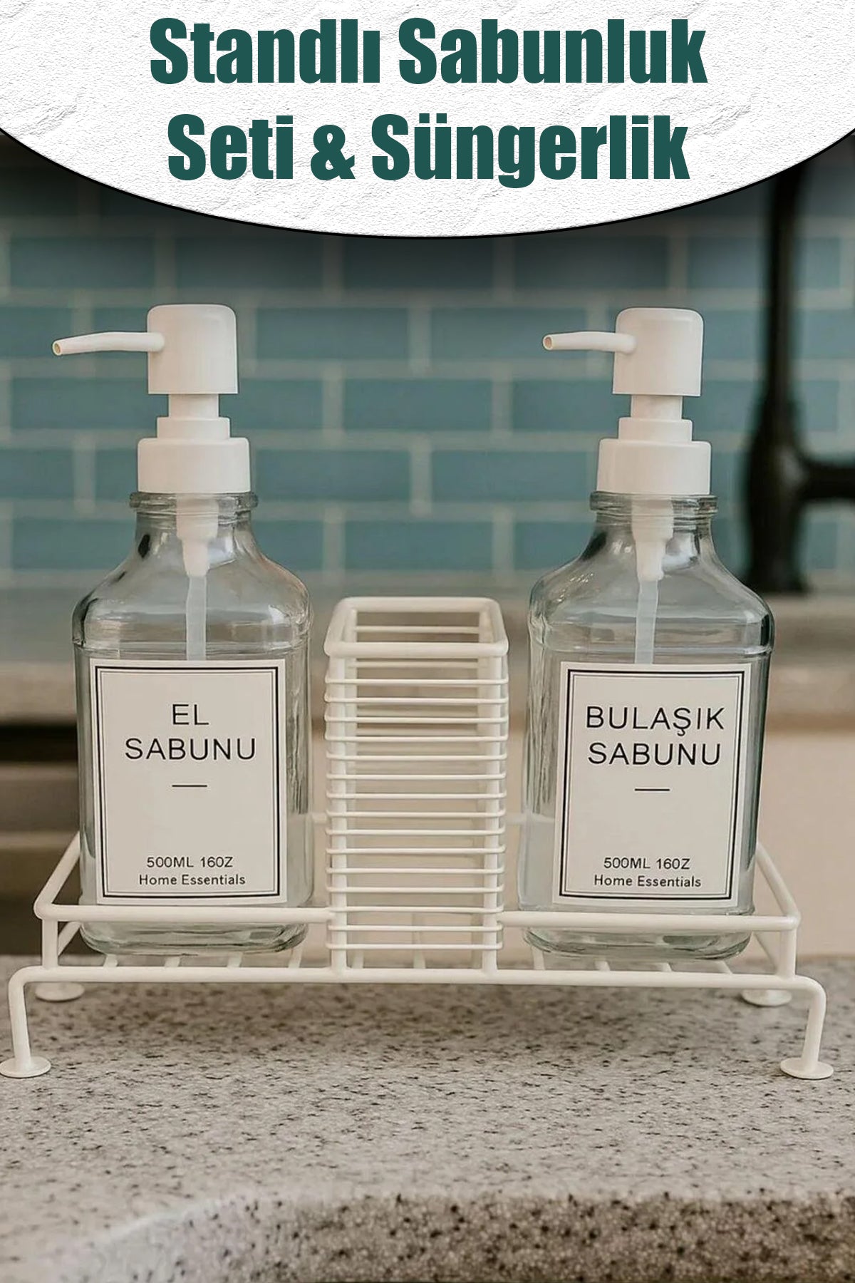 İBİCO 3 PARÇA METAL STANDLI & CAM SIVI SABUNLUK SETİ