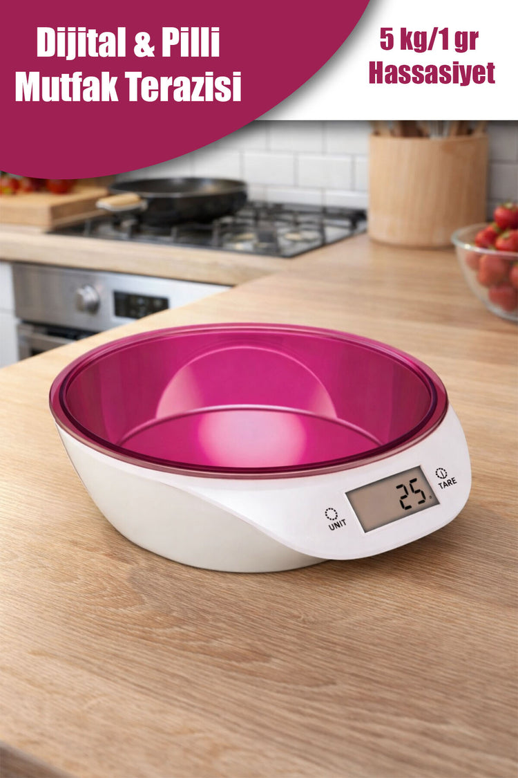 Hazneli Mutfak Tartısı Dijital Lcd Ekranlı Terazi 5 Kg Kapasiteli