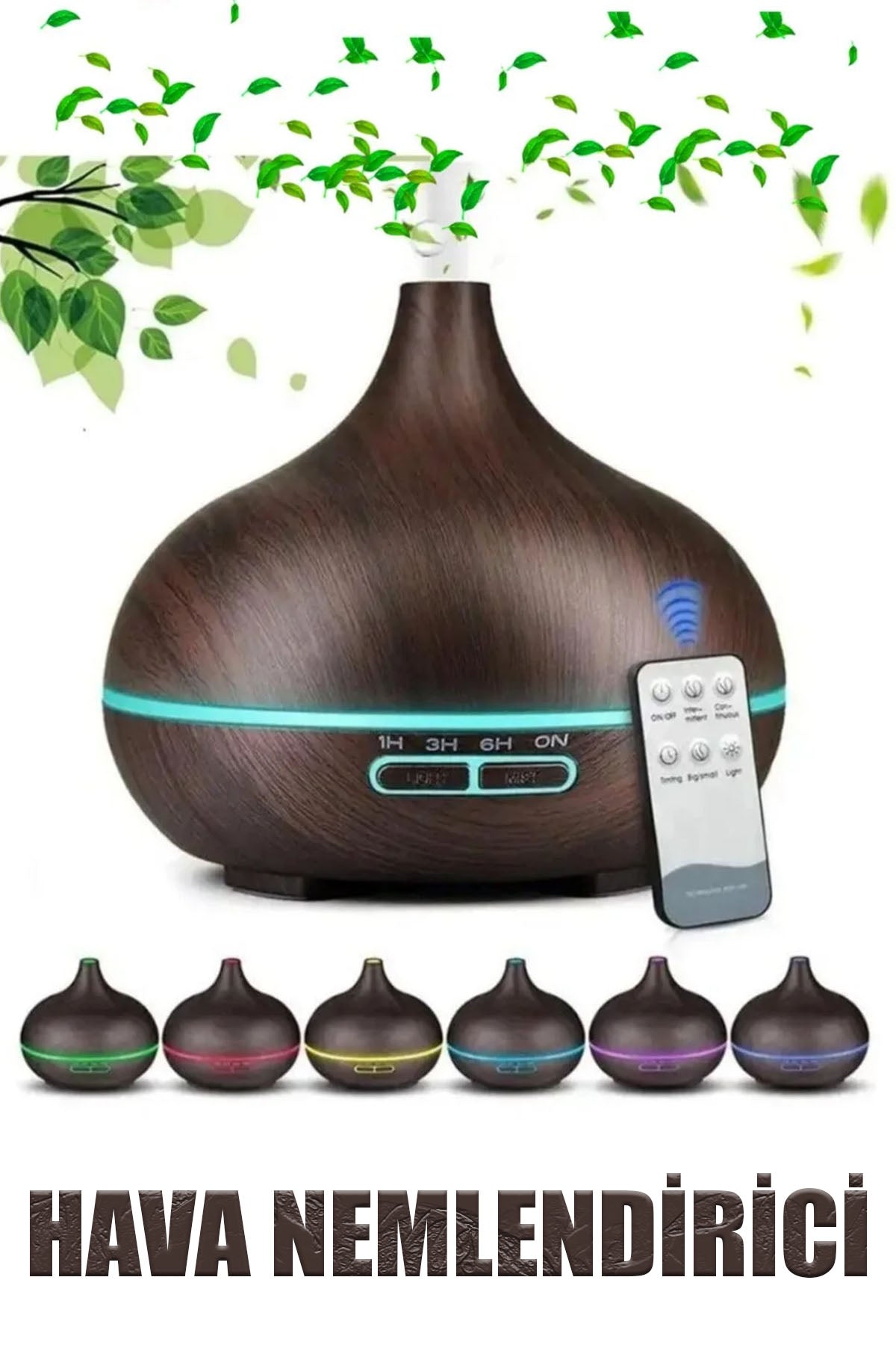 AHŞAP DESENLİ 500ML FİŞ ŞARJLI & KUMANDALI & LED IŞIKLI HAVA NEMLENDİRİCİ