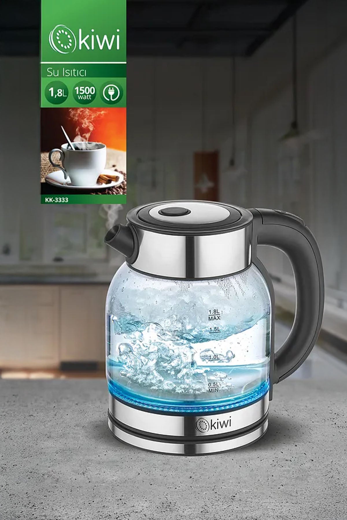 KİWİ KK-3333 SÜRAHİ MODEL 1.8 LT CAM KETTLE SU ISITICI