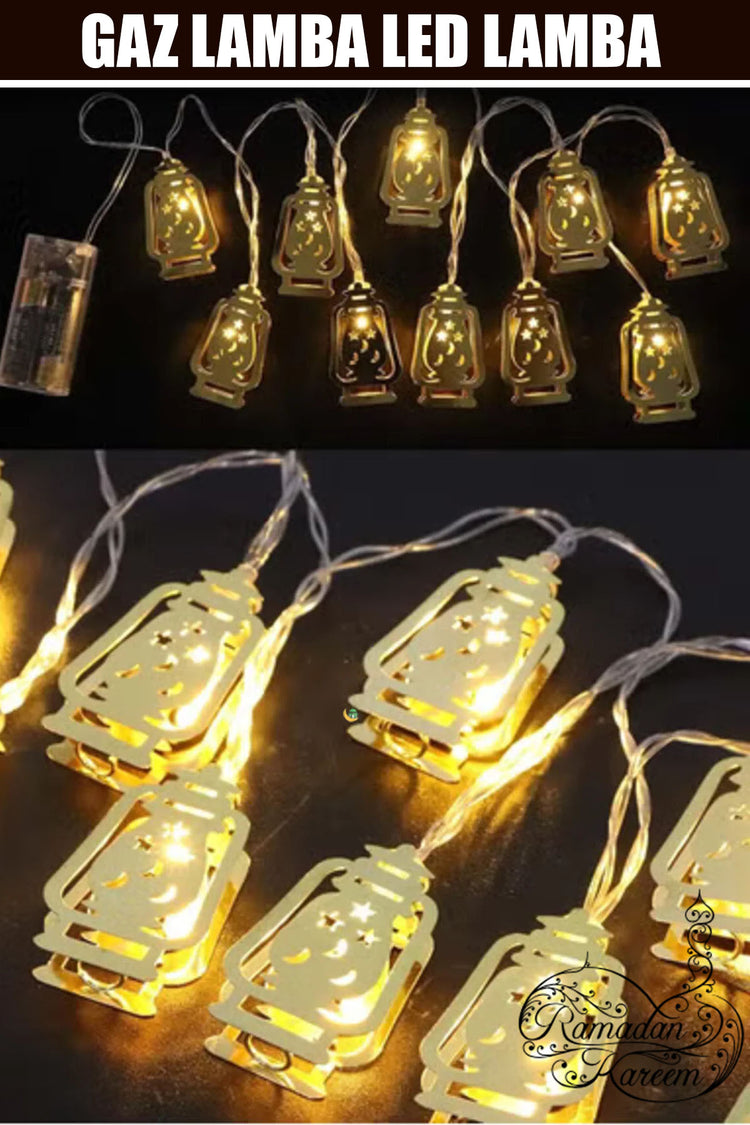 GAZ LAMBA MODEL 2MT GOLD METAL PİLLİ DEKORATİF RAMAZAN LED IŞIK & LAMBA