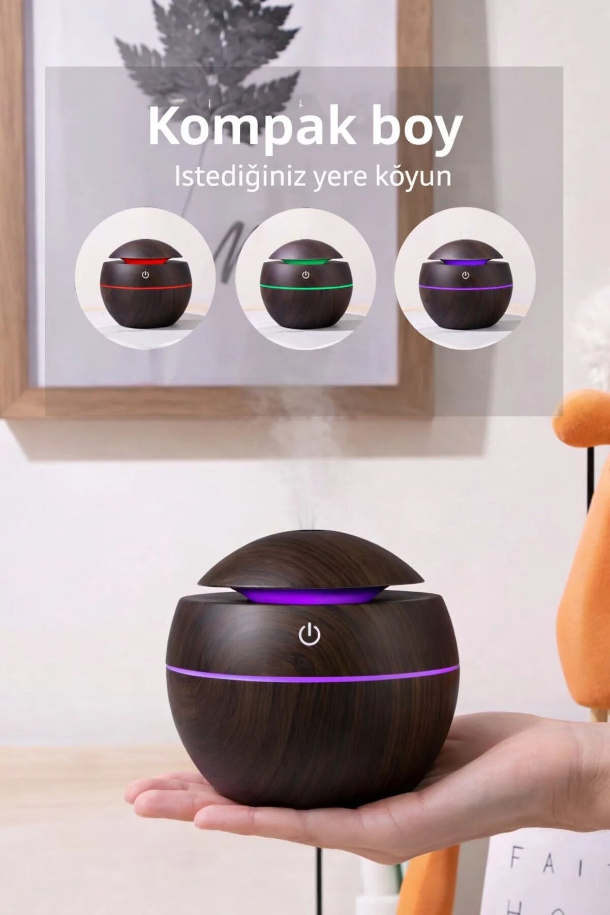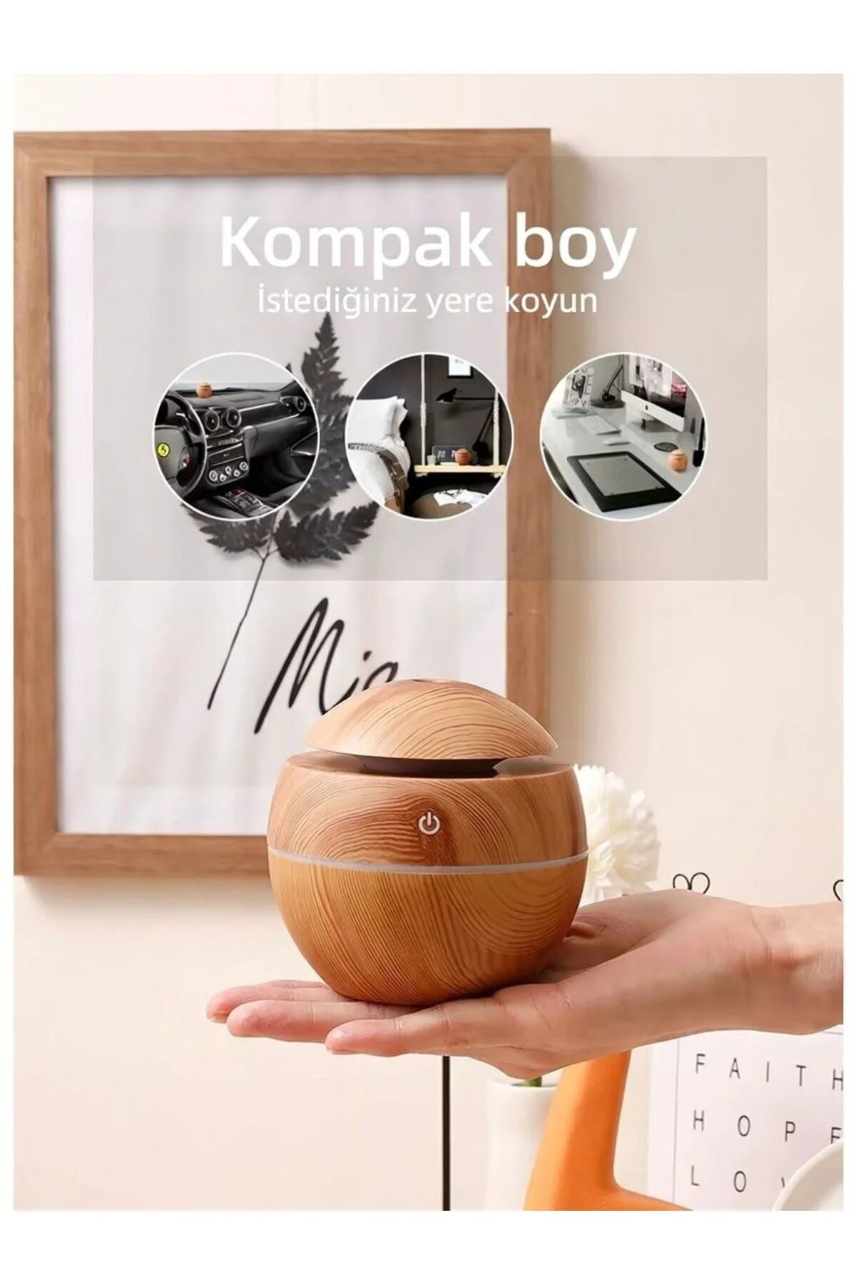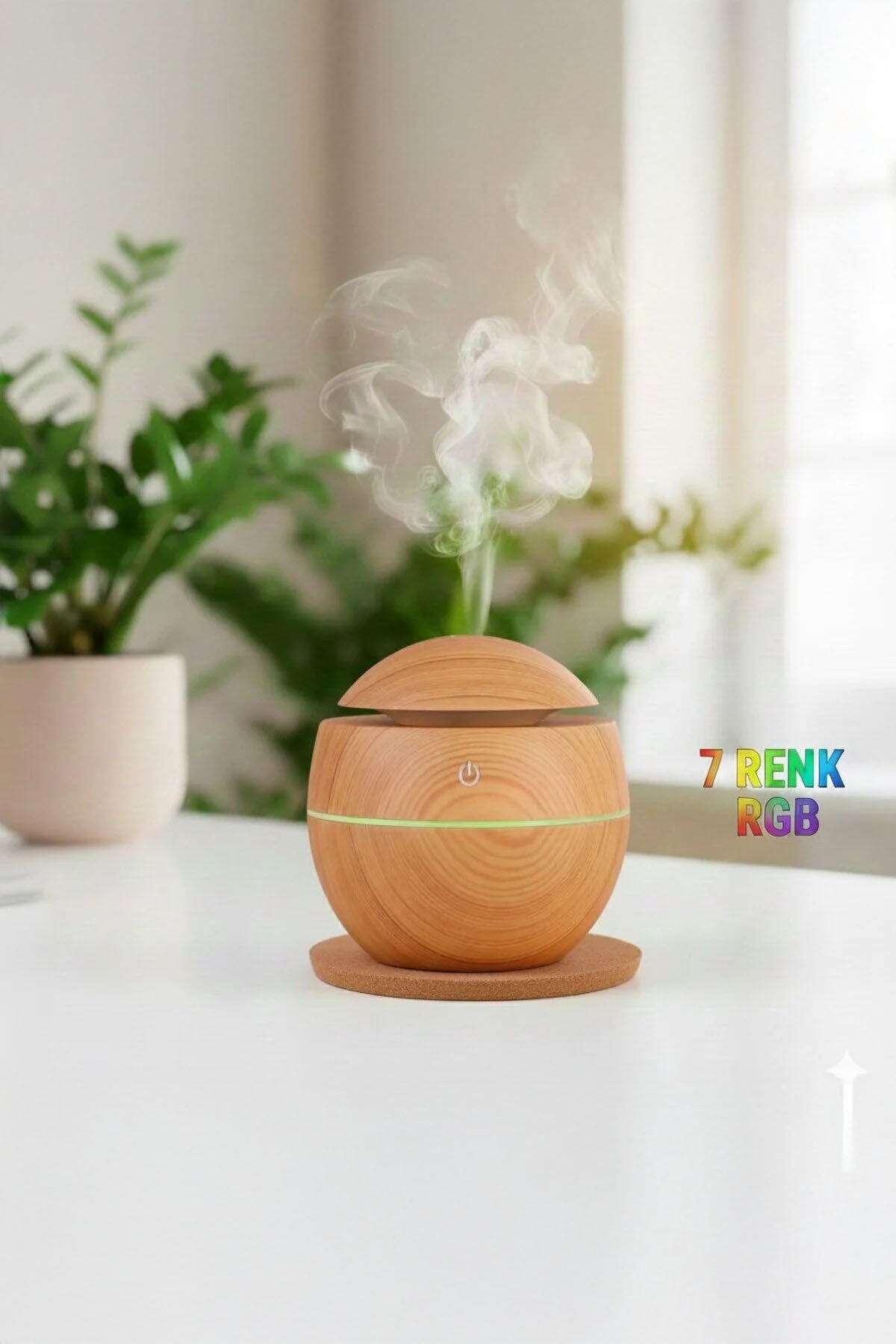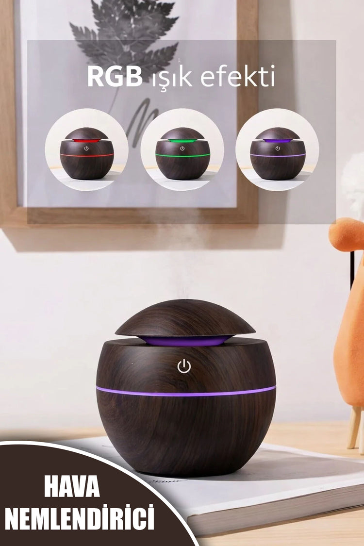 YUVARLAK AHŞAP GÖRÜNÜMLÜ USB ŞARJLI & IŞIKLI HAVA NEMLENDİRİCİ