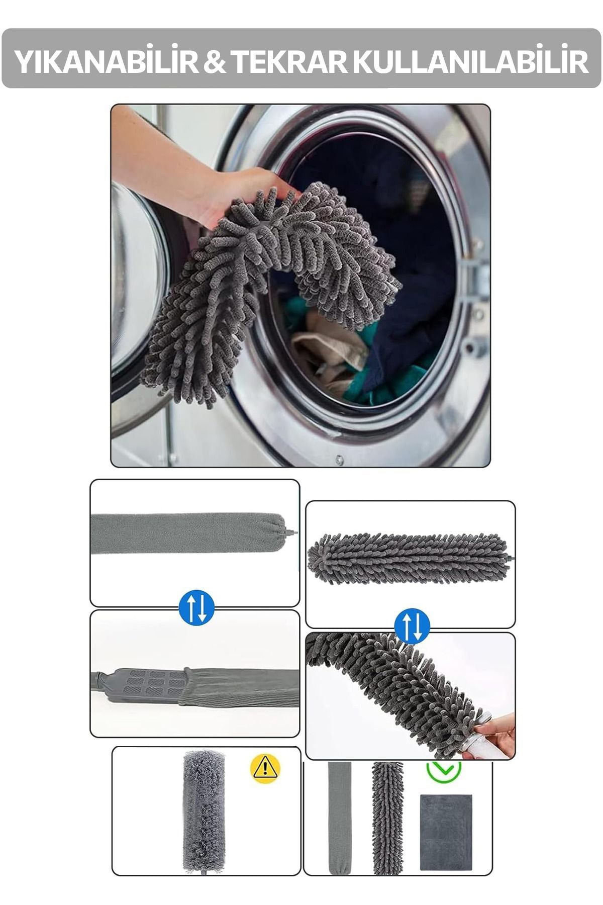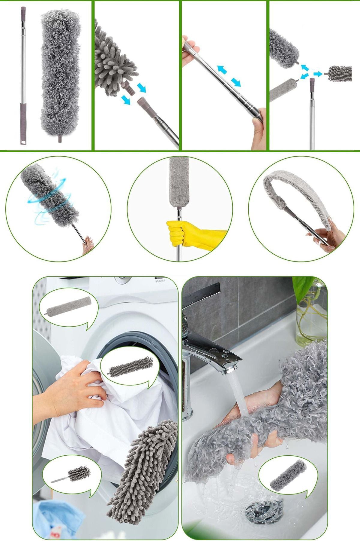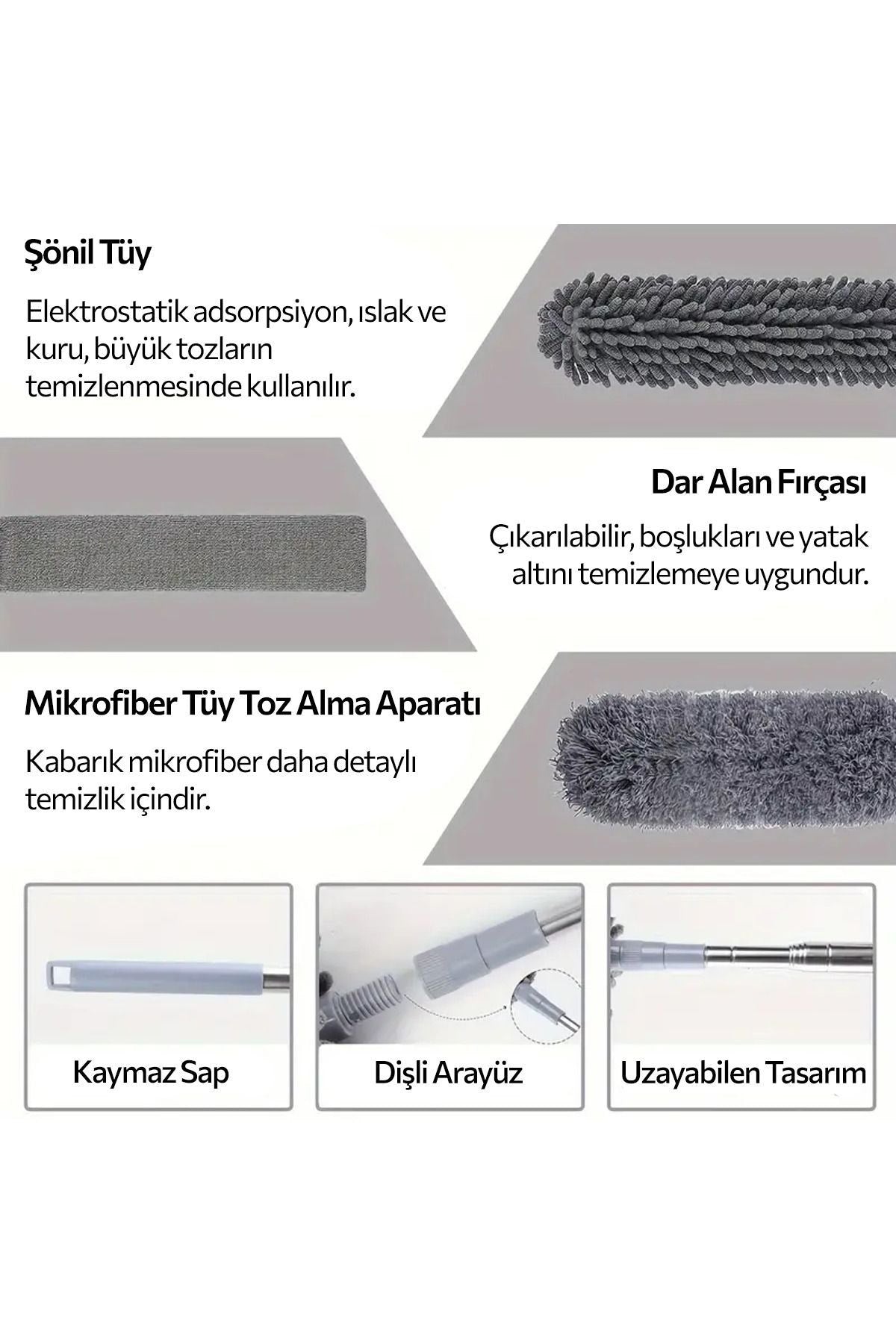 • Sap Uzunluğu: Sabit veya uzayan saplı versiyon – 43 cm’den 205 cm’e kadar uzar; yüksek raf ve tavan gibi zor noktalara erişim sağlar