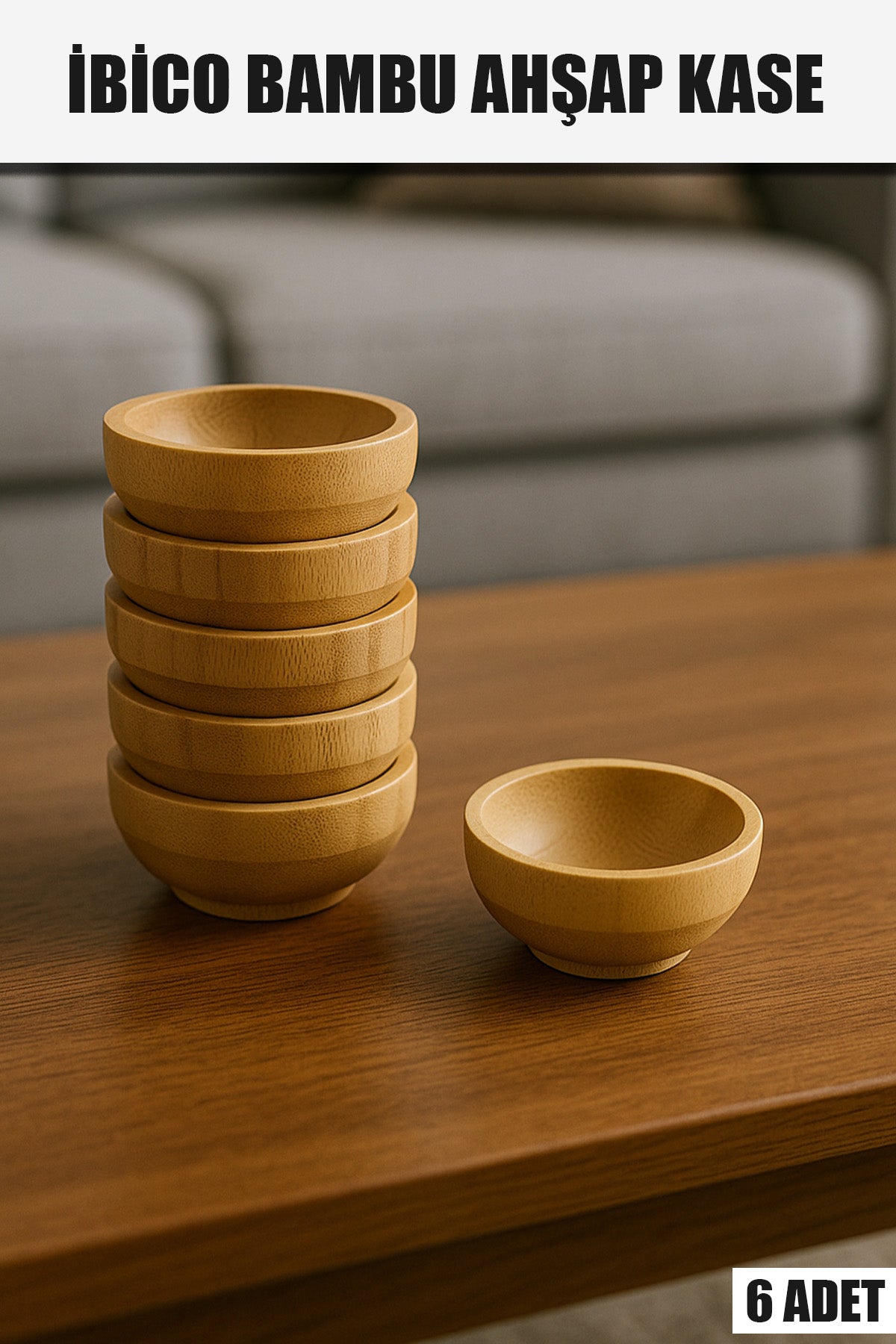 İBİCO KARE AHŞAP BAMBU 6 LI ÇEREZLİK & LOKUMLUK KASE SETİ