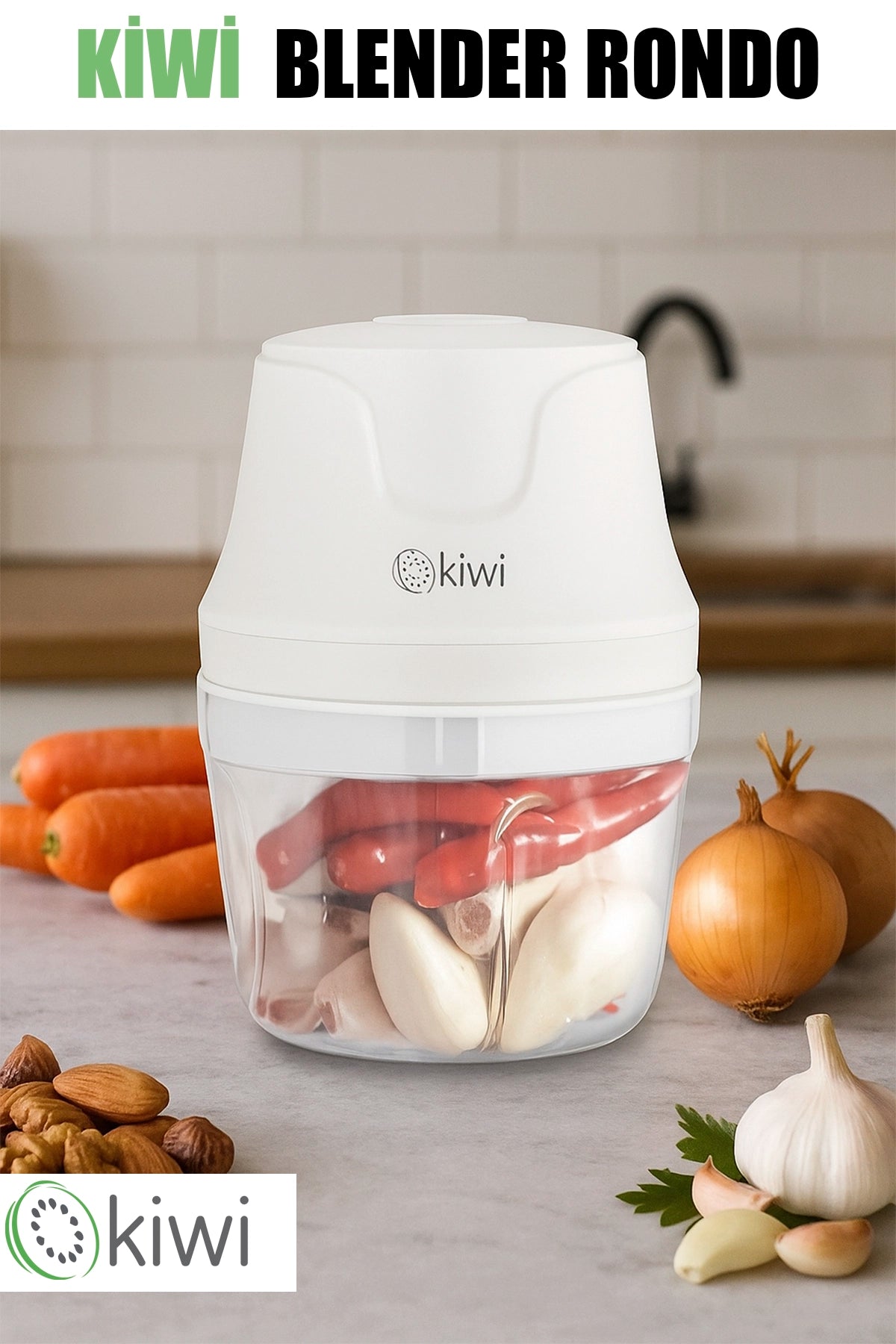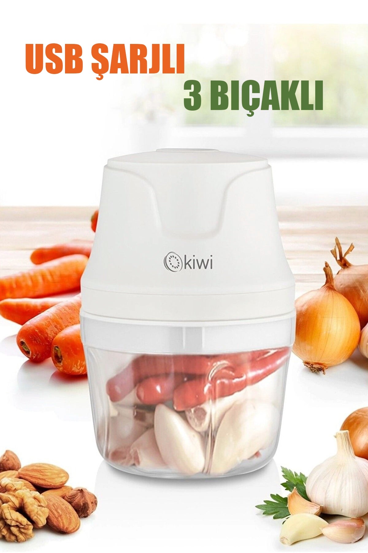 Kiwi KC-8203 USB Şarjlı Mini 3-Bıçaklı Blender Rondo Gıda Doğrayıcı, mutfakta hızlı ve pratik doğrama, çırpma, karıştırma ihtiyaçlarınız için ideal bir çözümdür. Kompakt tasarımıyla taşıması son derece kolay olan bu model, 350 ml kapasiteye sahip kristal mika haznesi ve güçlü şarjlı motoruyla öne çıkar.