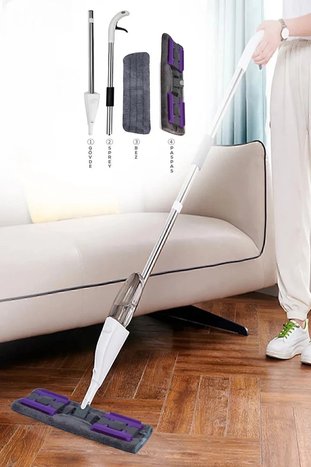 Çift İşlevli Temizlik: Sprey sistemi sayesinde temizleyici uygulanabilir; mikrofiber başlıkla aynı anda kuru ve ıslak temizlik yapılabilir.