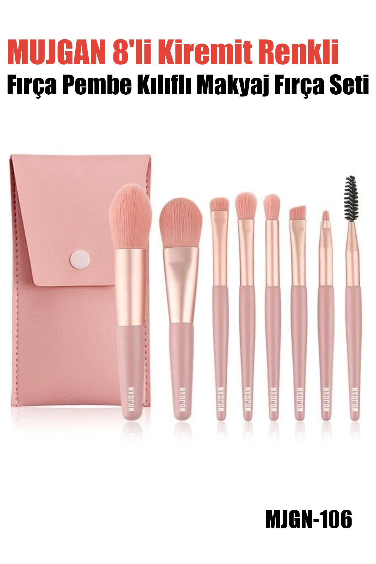 💄 8’li Kiremit Renkli Makyaj Fırça Seti – Pembe Kılıfıyla! 🎨