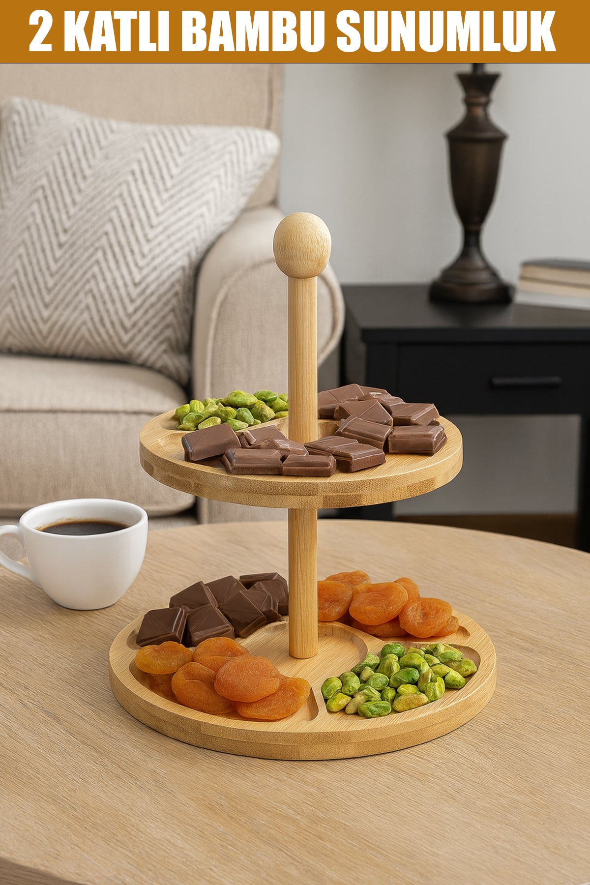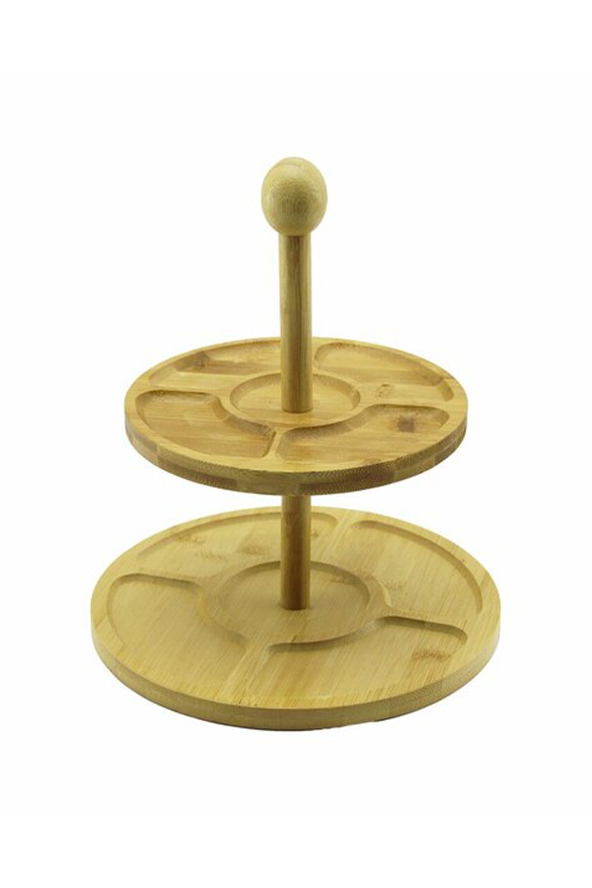 PABLITO YUVARLAK & 5 BÖLMELİ & 2 KATLI AHŞAP BAMBU SUNUMLUK