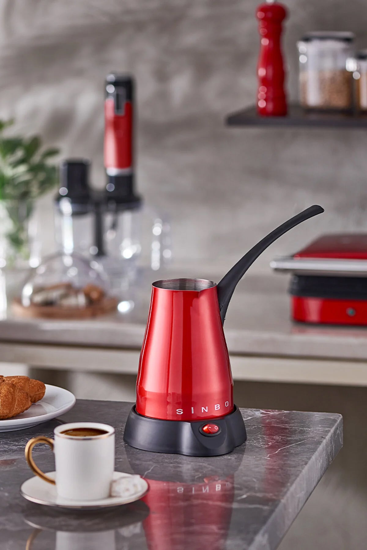 SİNBO KIRMIZI ELEKTİRKLİ CEZVE TÜRK KAHVE MAKİNESİ