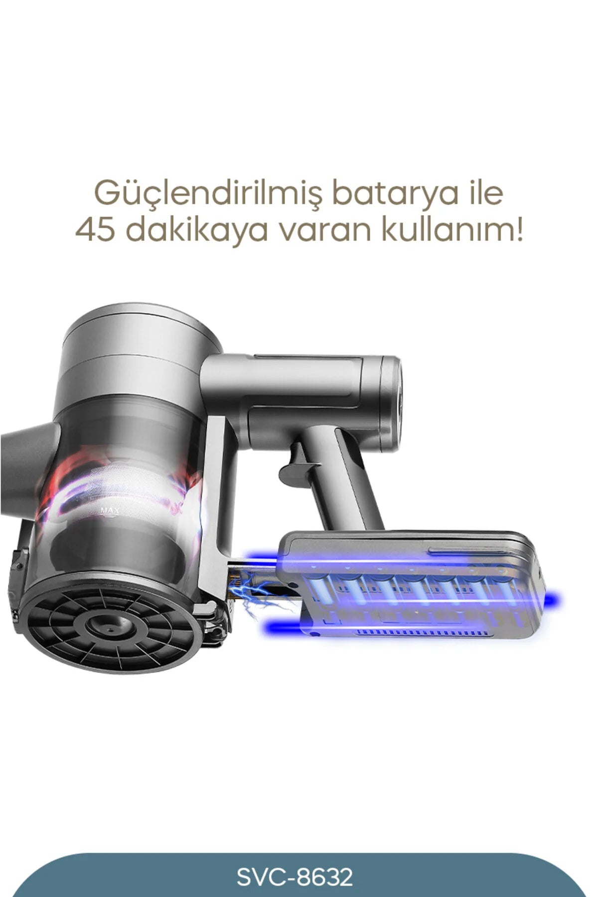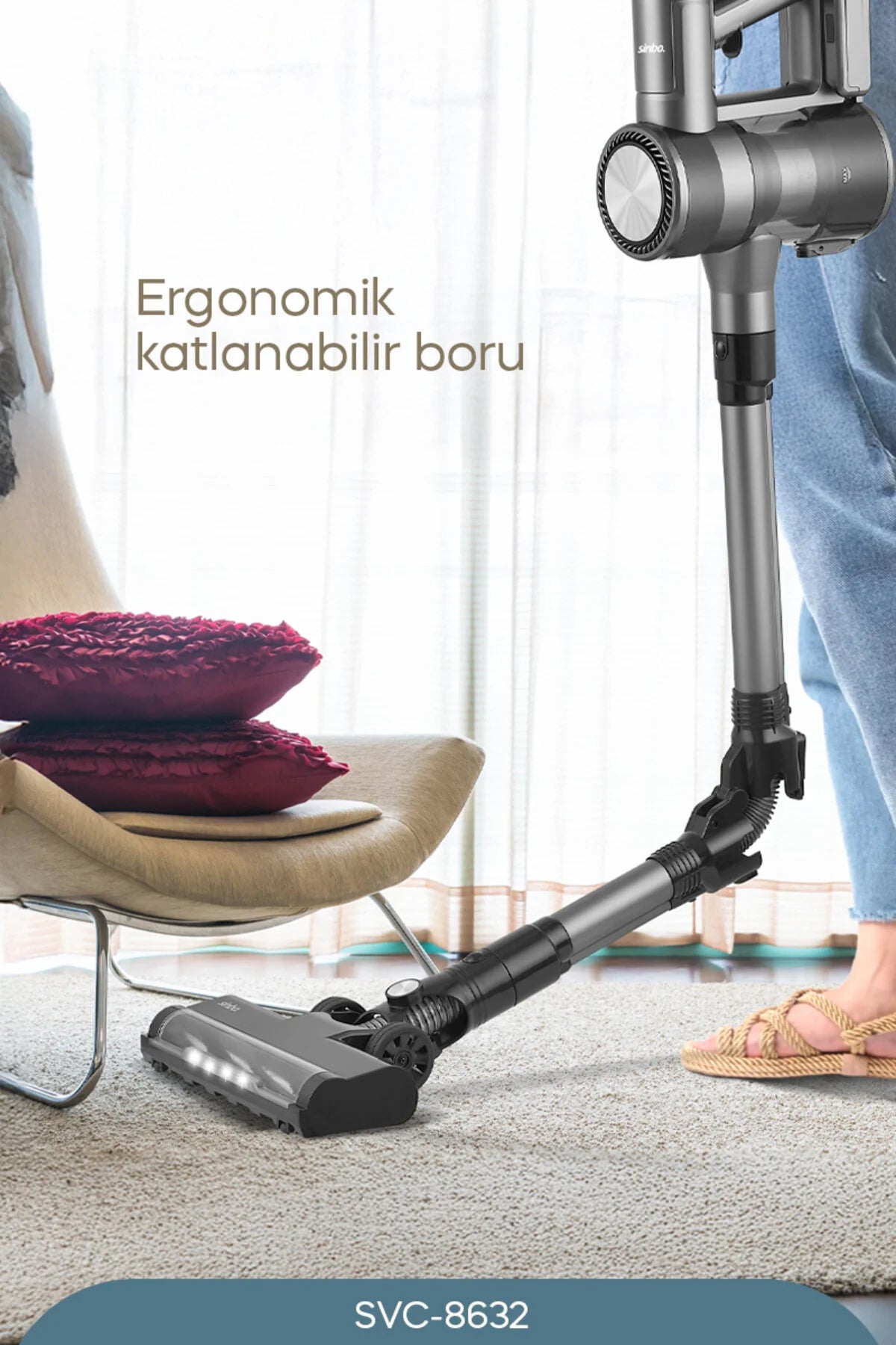 Sinbo’nun SVC-8632 modeli, özellikle kullanım kolaylığı, kompakt saklanabilme ve kablo derdi olmadan temizlik yapmak isteyenler için dizayn edilmiş modern bir dikey süpürgedir. Katlanabilir boru sistemi ve ergonomik tasarımı sayesinde dar alanlarda bile kolaylıkla depolanabilir ve manevra kabiliyeti sunar.