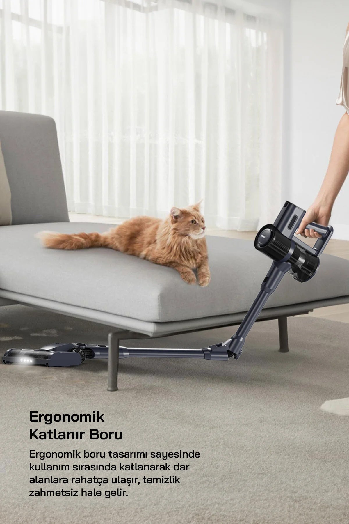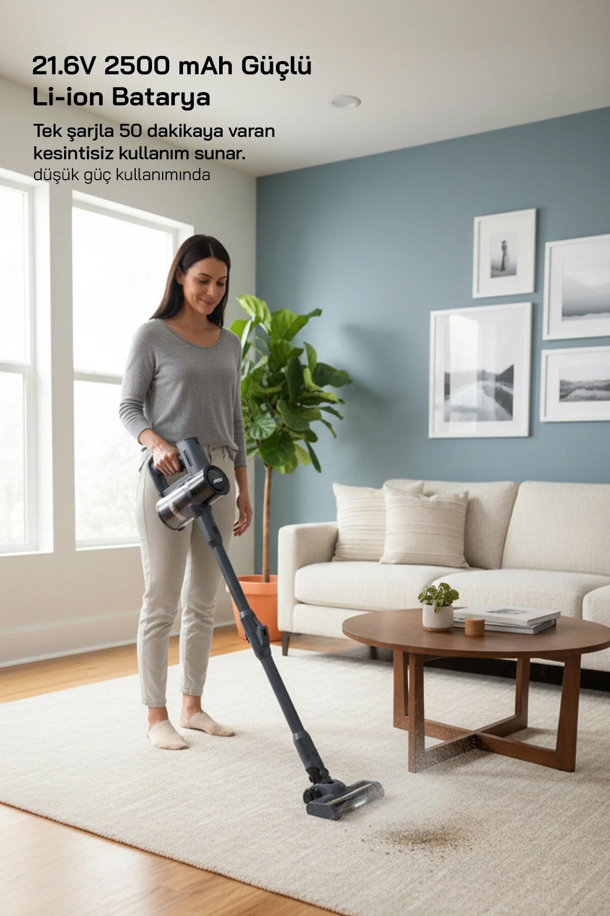 - Kablosuz ve şarjlı kullanım: Priz derdi olmadan evin her köşesini özgürce temizleyin.