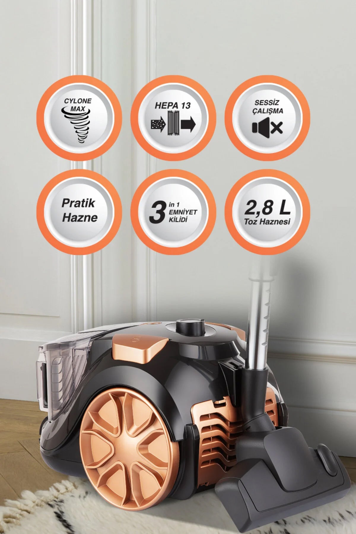 - Torbasız tasarım & geniş hazne (2,8 L): Torba değişimi derdi olmadan, yüksek kapasiteyle uzun süreli temizlik.