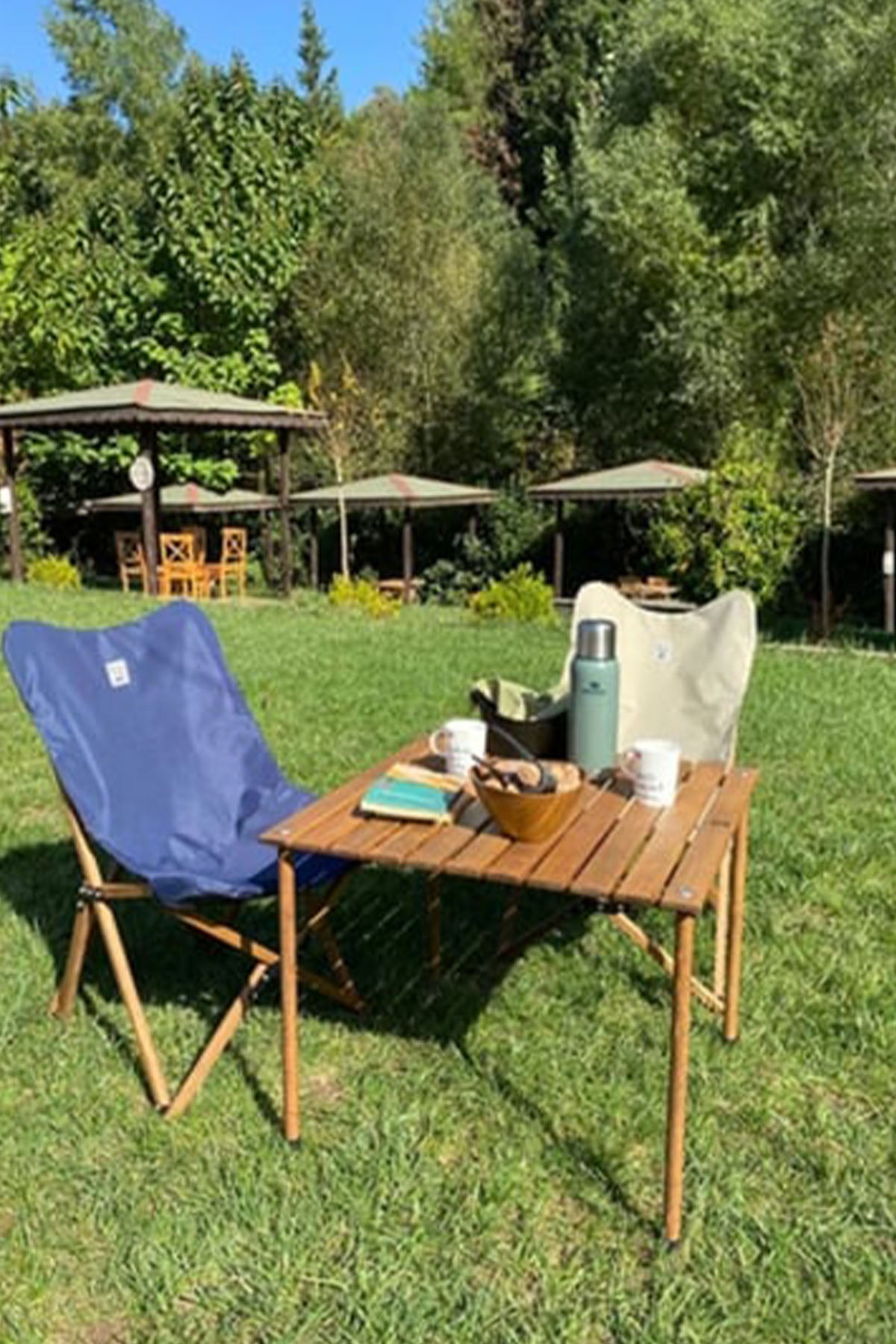 KATLANABİLİR ÇANTALI AHŞAP KAMP MASASI