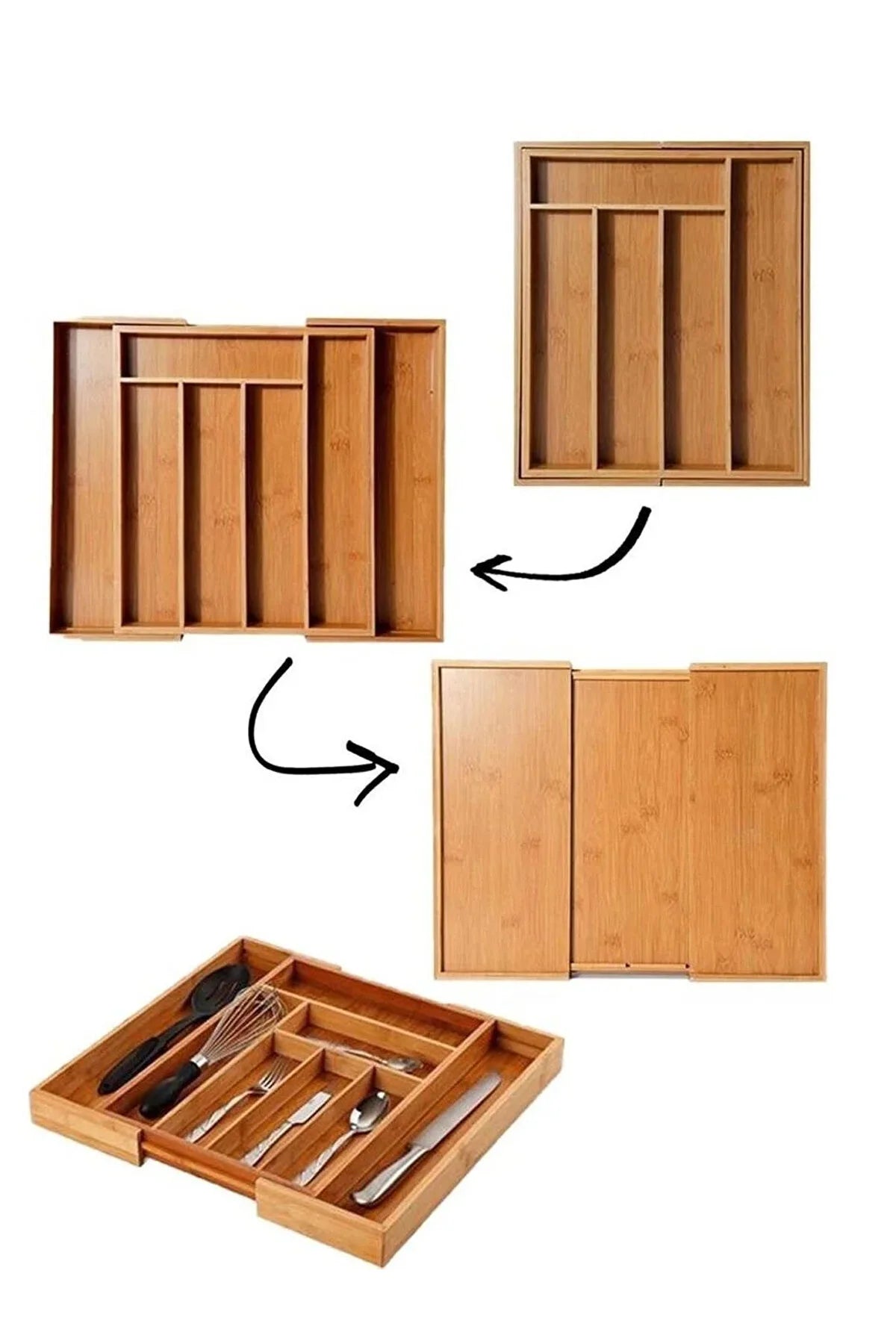 Mutfakta düzeni korumak artık daha kolay! Ayarlanabilir Bambu Kaşıklık, doğal bambu görünümüyle estetik bir görünüm sunarken, fonksiyonel tasarımıyla çekmece içindeki dağınıklığı ortadan kaldırır. Ayarlanabilir yapısı sayesinde farklı genişlikteki çekmecelere uyum sağlar — isterseniz daraltıp kompakt bir düzenleyici, isterseniz daha geniş hale getirerek daha geniş alanlarda kullanabilirsiniz.