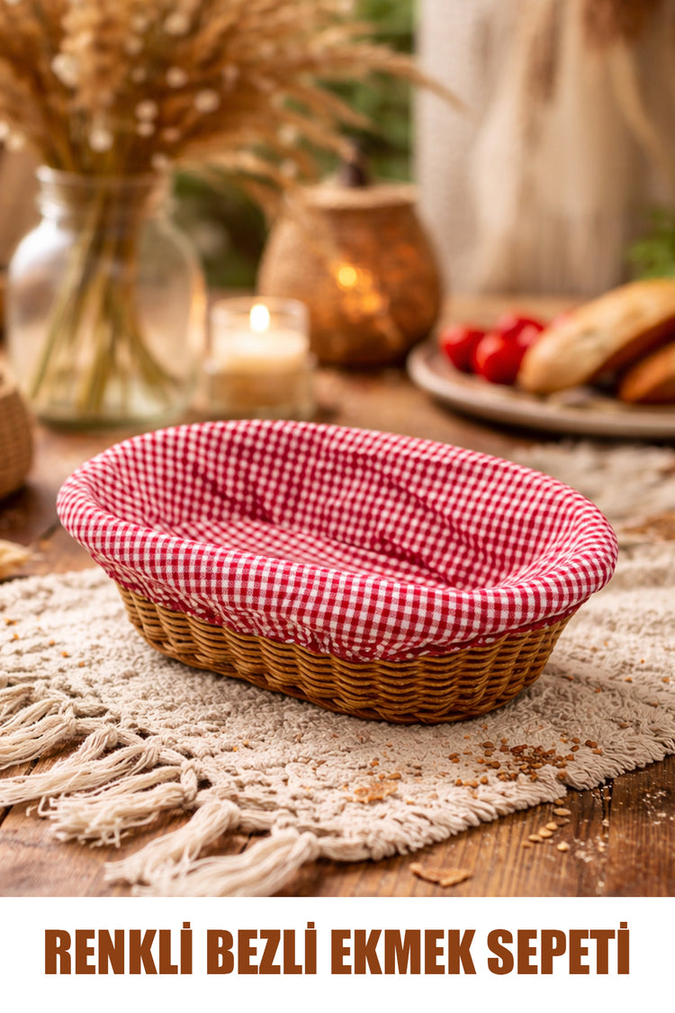 OVAL RENKLİ BEZLİ HASIR EKMEK SEPETİ