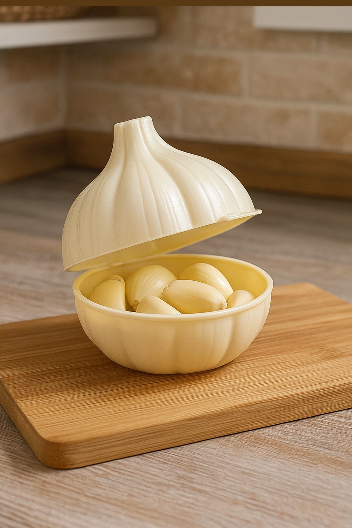 💡 Bu saklama kabı; sarımsak, soğan, limon gibi yiyeceklerin hava ile temasını azaltarak koku ve nemden etkilenmeden taze kalmasına yardımcı olur. Buzdolabında veya tezgâh üstünde kullanım için idealdir ve mutfakta düzen sağlar.