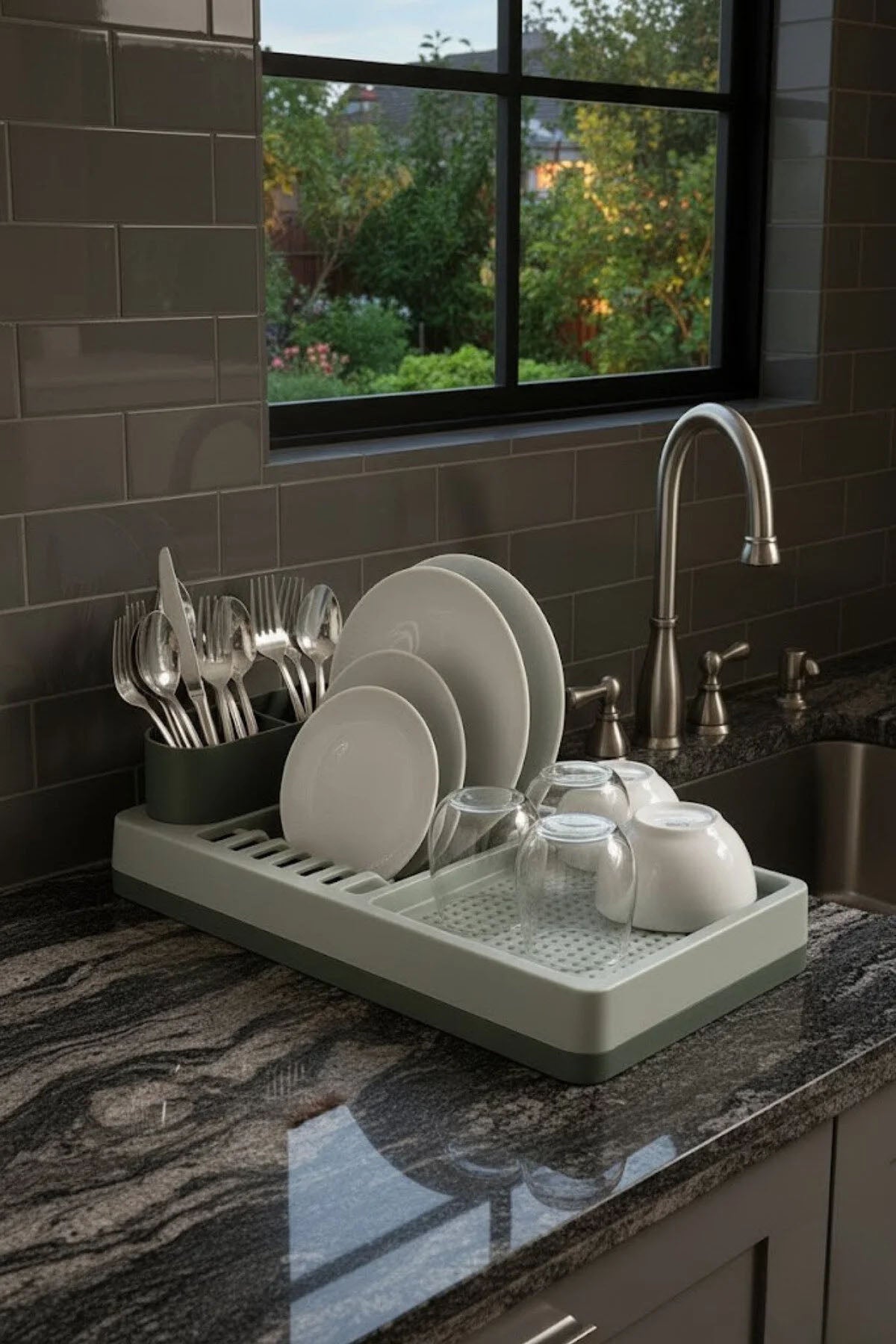 Pratik, modern ve kullanışlı! Mutfak tezgâhınız için tasarlanmış bu tezgâh üstü bulaşıklık ve tabaklık, bulaşıklarınızı düzenli ve hijyenik şekilde kurutmanızı sağlar. Büyük boyutlara sahip geniş yüzeyi sayesinde tabak, kase, bardak ve çatal-kaşıkları ergonomik olarak yerleştirebilirsiniz.