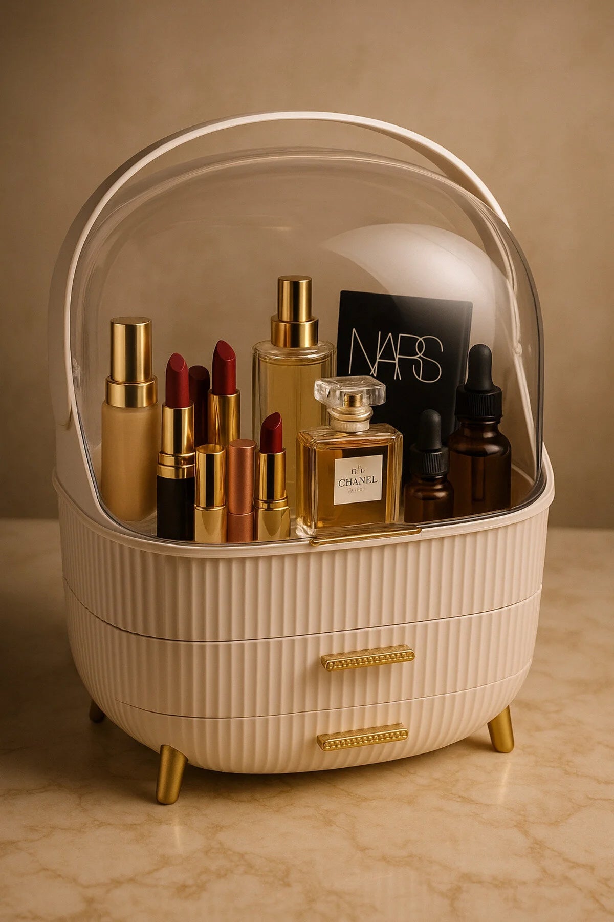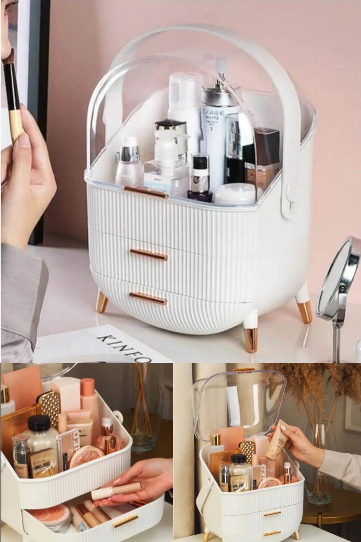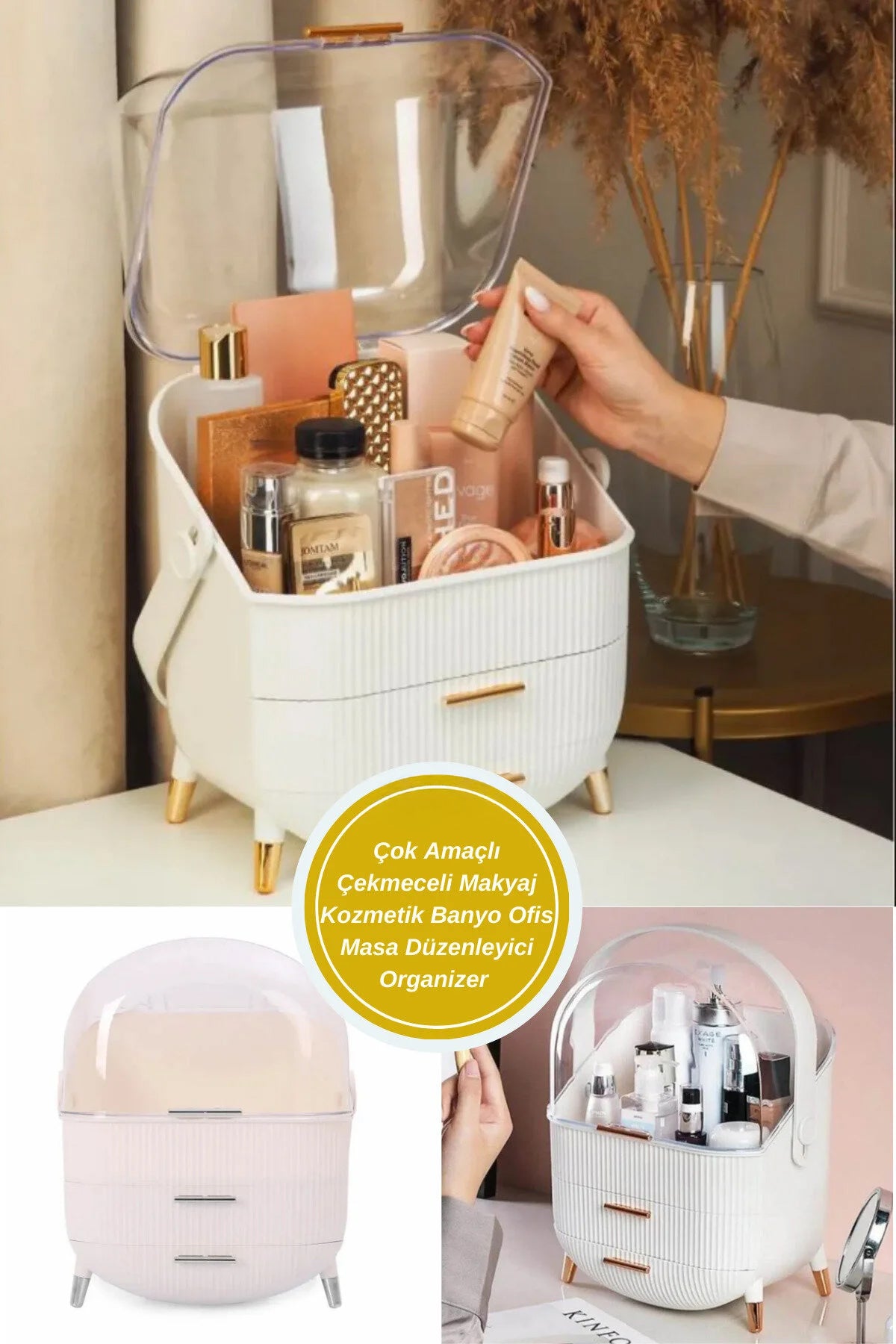 2 ÇEKMECELİ FANUSLU KOZMETİK & TAKI ORGANİZERİ
