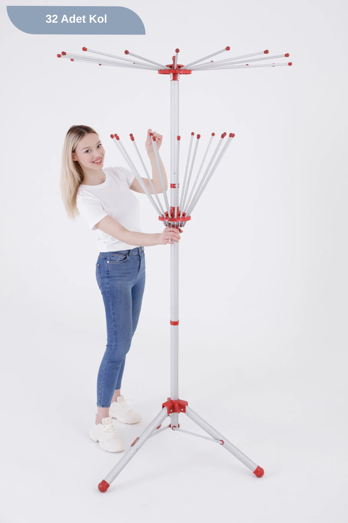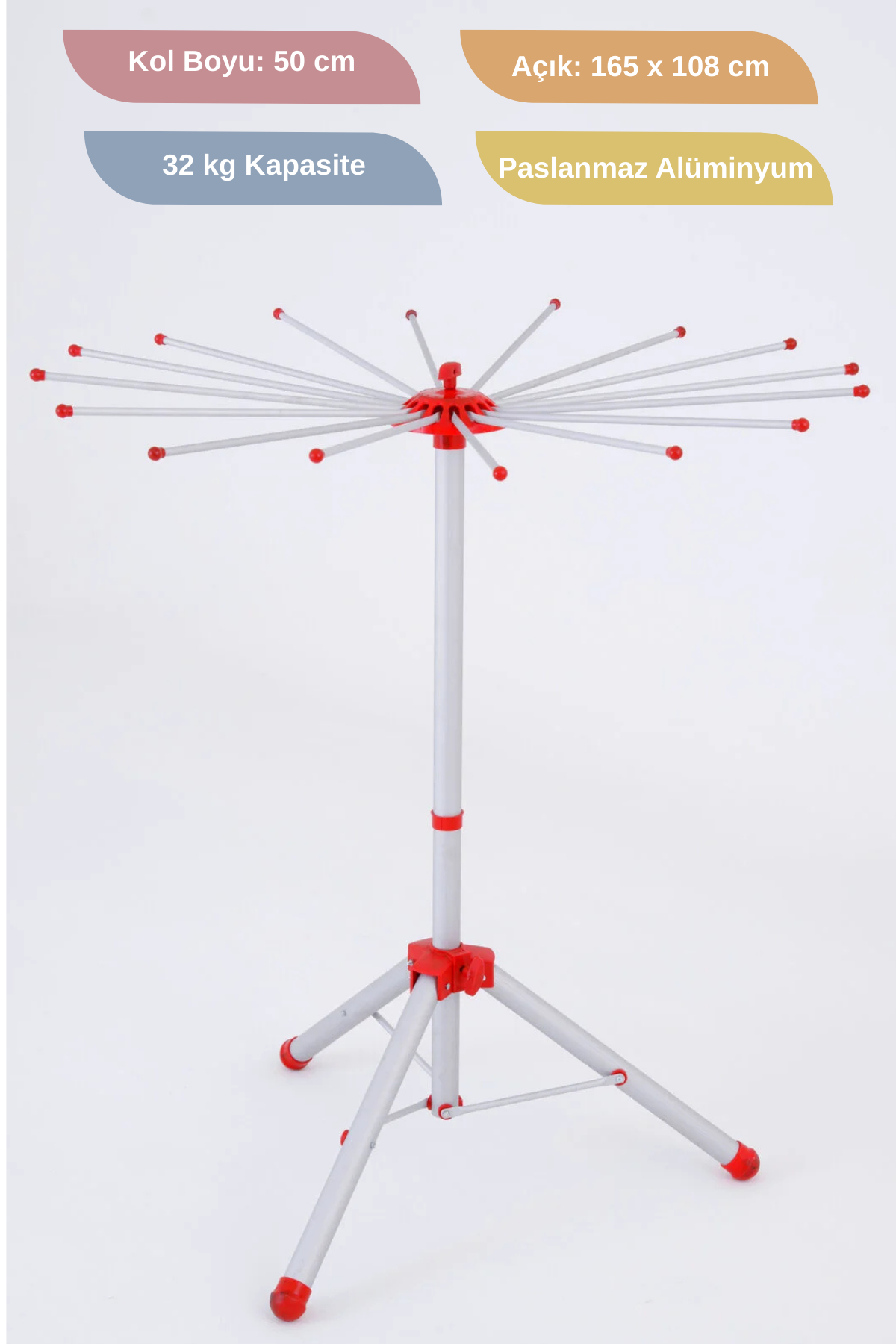Çamaşır askısı istediğiniz yönde dönebilme özelliğine sahiptir; böylece çamaşırlarınız hava alarak eşit şekilde kurur ve daha hızlı kurutma sağlar. 👕 Çift Katlı Geniş Kapasite: