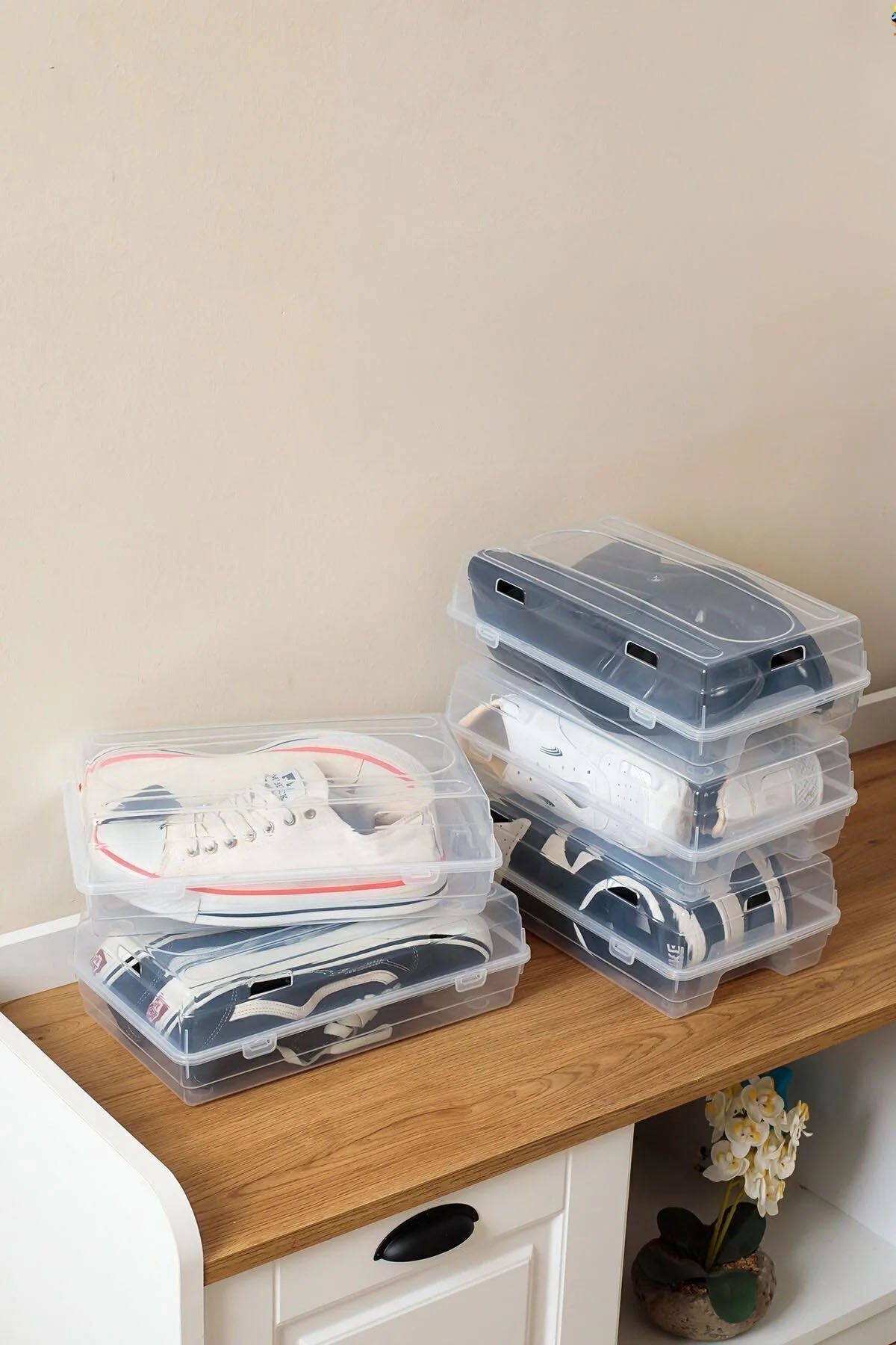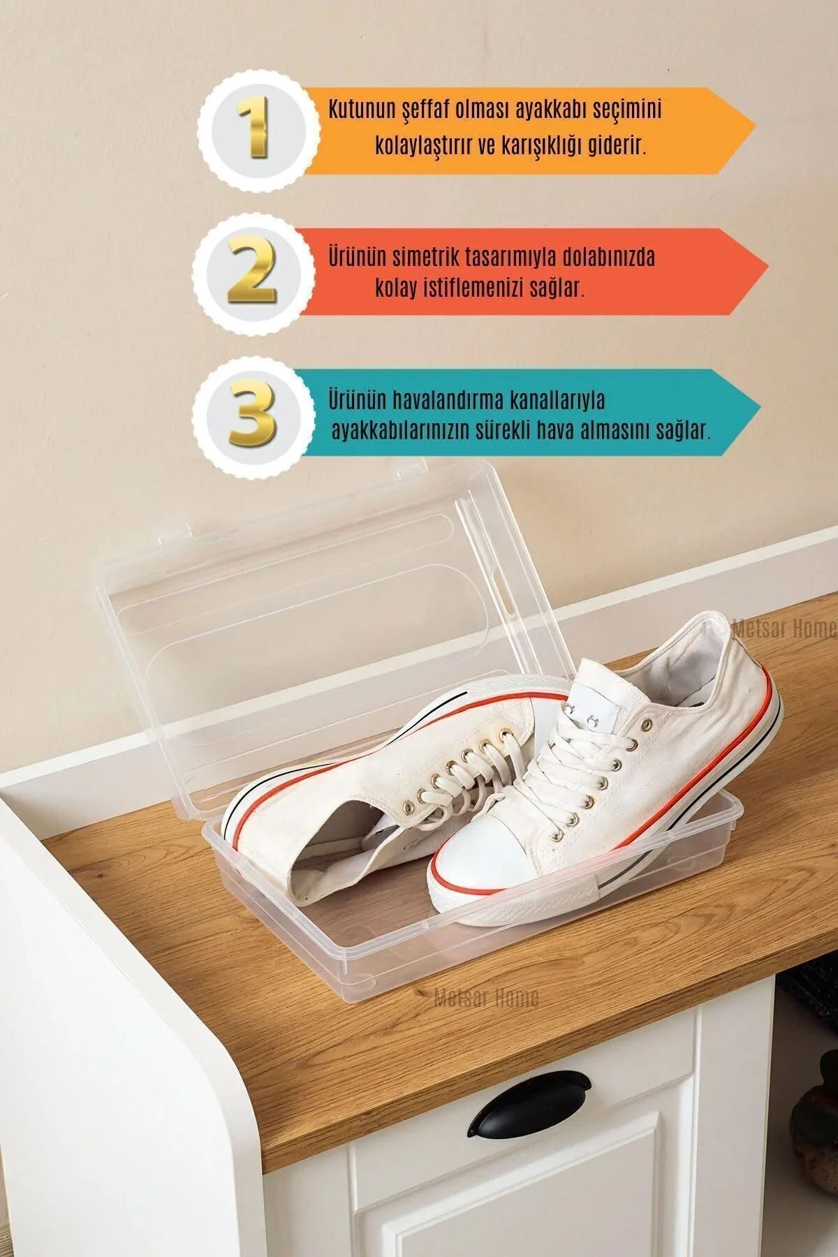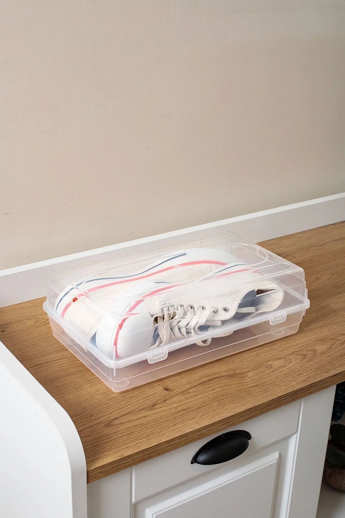 Şeffaf yapısı sayesinde içindeki ayakkabıyı kutuyu açmadan görebilir — aradığını hızlı bulma kolaylığı sağlar.