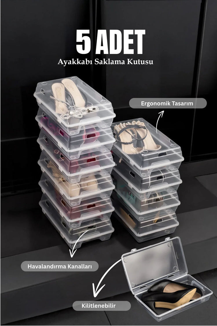 5 ADET ŞEFFAF AYAKKABI SAKLAMA KUTUSU