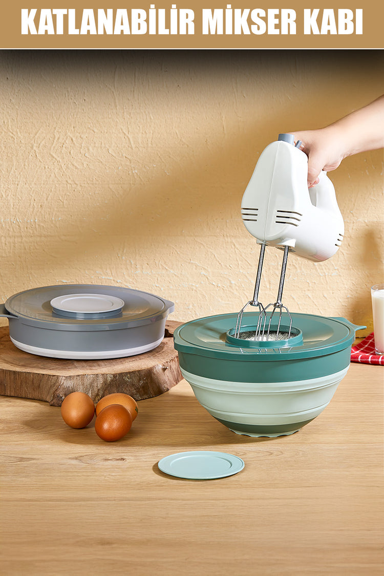 - Marka: QLUX — Model: L-00960 (2 in 1 Katlanabilir Kapaklı Mikser Kabı).