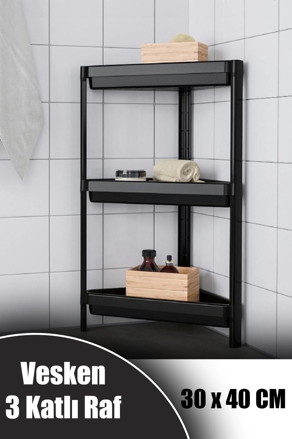 · Vesken üçgen raf ünitesi 3 katlı siyah köşe banyo rafı düzenleyici · ebatlar genişlik: 33 cm Derinlik: 33 cm yükseklik: 71 cm · herhangi bir alet olmadan birbirine geçme sistemiyle hızlı ve kolayca monte edebilirsiniz. · rafın yüksek kenarları sayesinde şampuan ve saç kreminden banyo süngerine kadar her şey yerinde sabit kalır. · küçük banyolar için mükemmeldir. En küçük banyolara sığar. · malzeme polipropilen plastik · raflarda şampuan şişelerinden, sabun ve küçük eşyalara kadar tüm banyo malzemeleriniz için bol miktarda alan vardır. · Bilmekte Fayda Var Bu mobilya, çocukların tırmanma ya da asılmaları durumunda devrilmesini önlemeye yardımcı güvenlik bağlantıları ile duvara sabitlenmelidir. Farklı duvar materyalleri farklı türde bağlantı parçaları gerektirir. Duvar tipi farklı ise ek parçaların ayrıca satın alınması gerekmektedir. Evinizdeki duvar yapısına uygun olan bağlantı parçalarını kullandığınızdan emin olunuz. En küçük banyolara sığar.